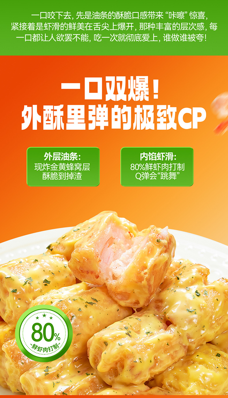 千味央厨虾滑油条整颗虾滑早餐半成品网红油条空气炸锅油条爆汁