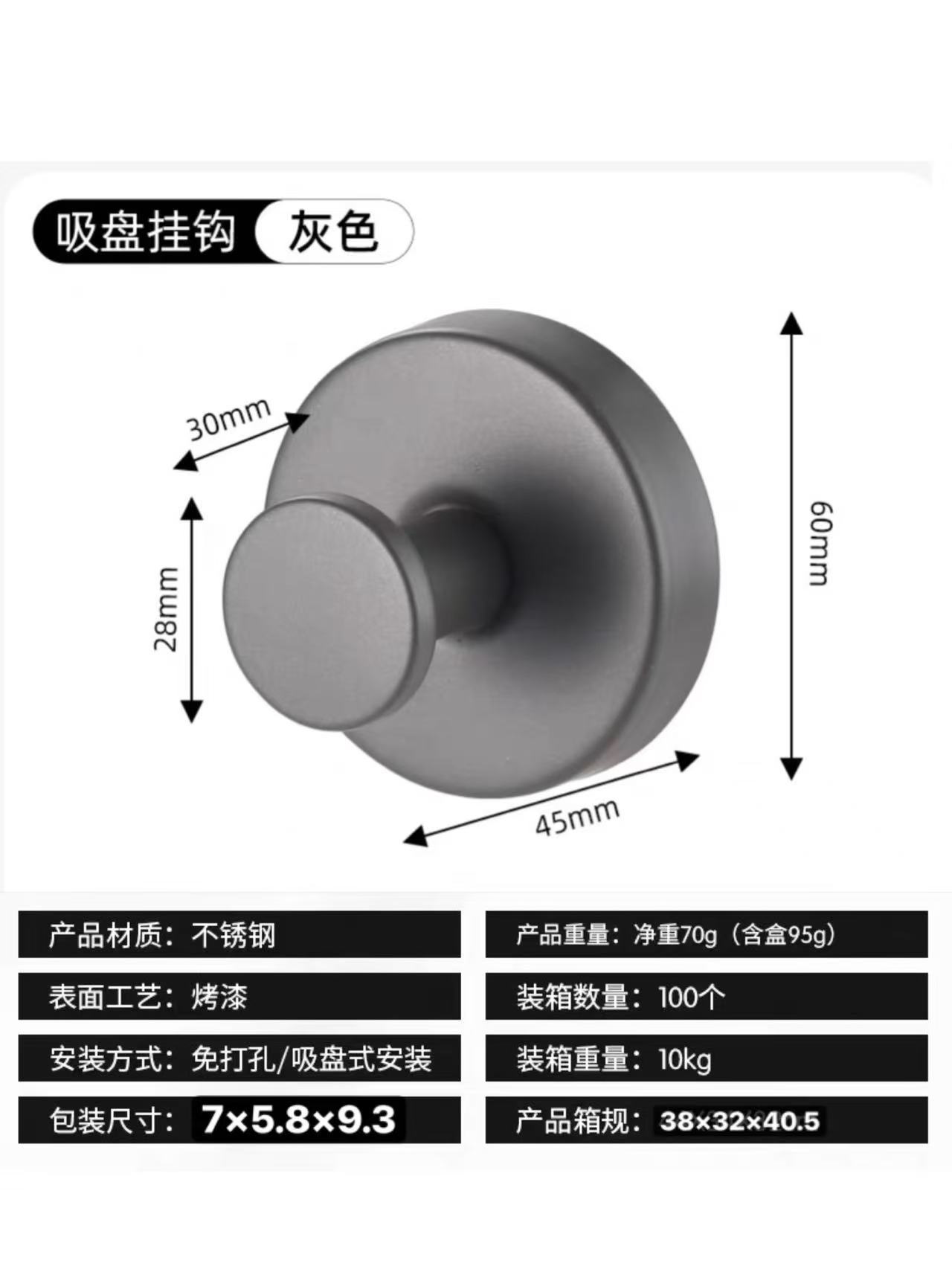 颜色 黑色(吸盘免打孔挂钩),金色(吸盘免打孔挂钩),白色(吸盘免打孔挂钩),灰色(吸盘免打孔挂钩),亮光(吸盘免打孔挂钩),拉丝(吸盘免打孔挂钩)