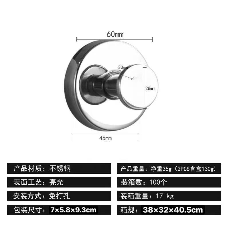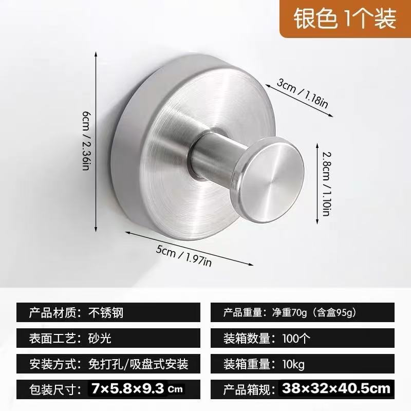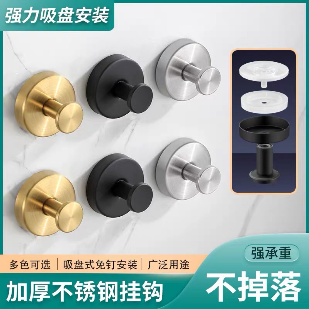 跨境不锈钢吸盘挂钩衣钩毛巾钩免打孔强承重衣帽钩墙门后浴室厨房