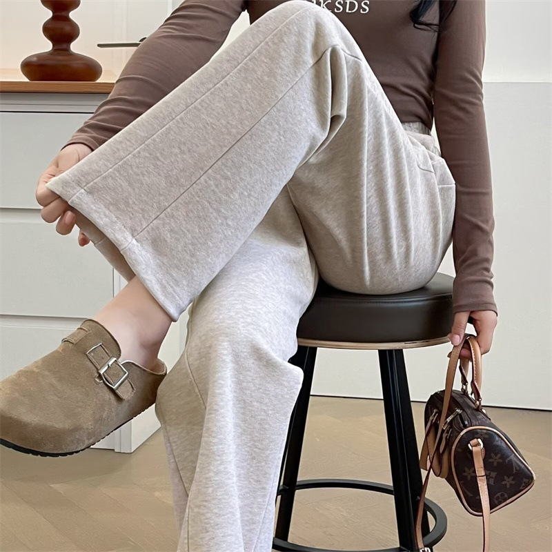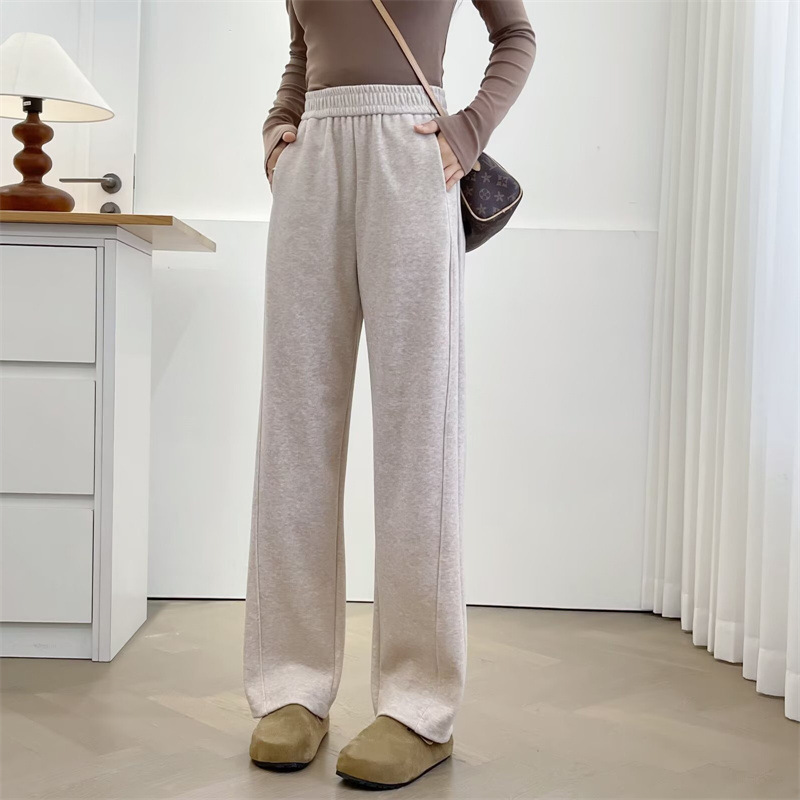 2025秋冬新款大码胖妹妹基础款通勤加绒保暖直筒裤休闲长裤女8668