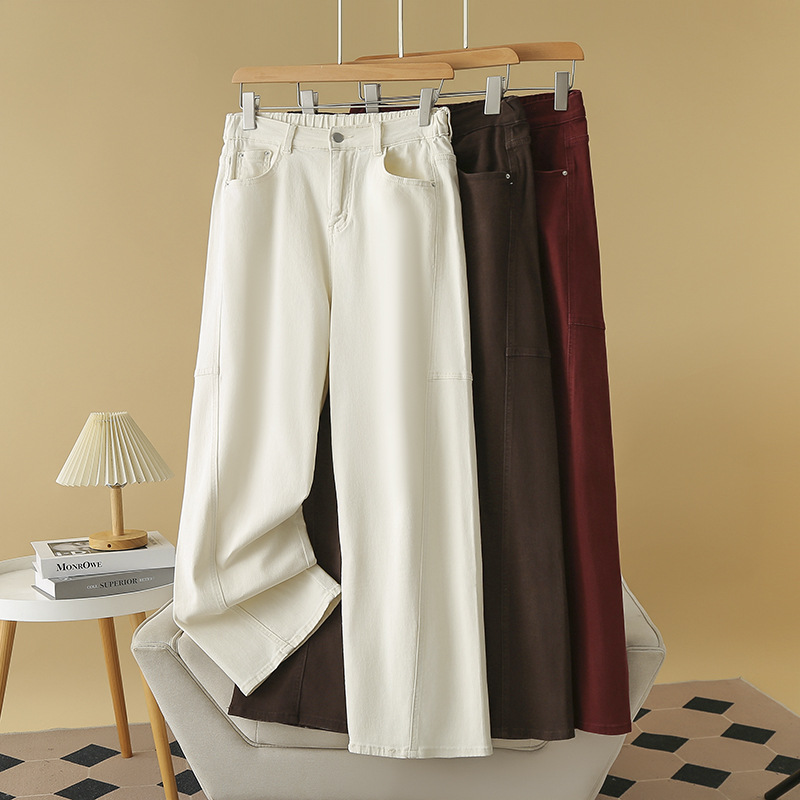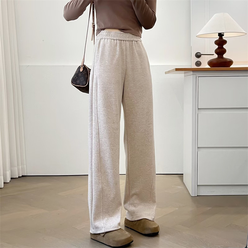 2024秋冬の大きいサイズの綿のズボンの高腰の緩みのシンプルな保温のズボンの太っている妹のズボンの薄いストレートのズボンの百合8312