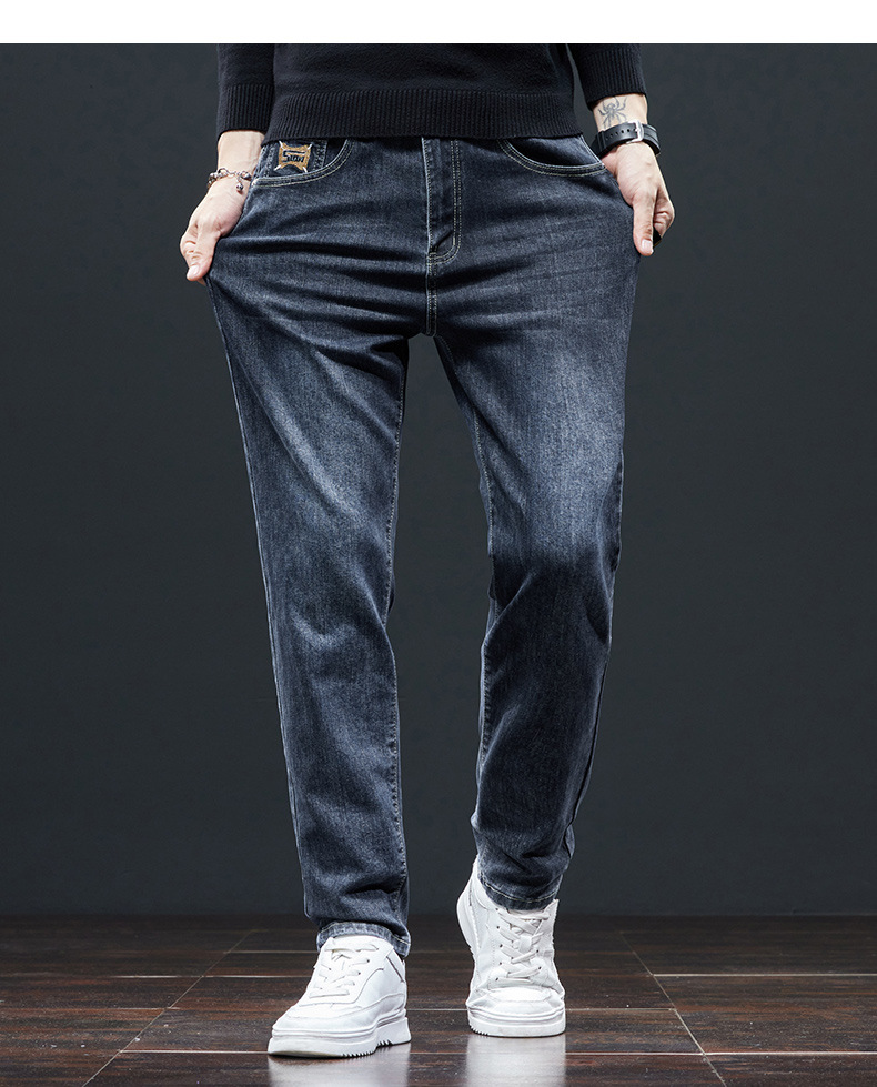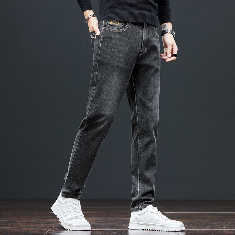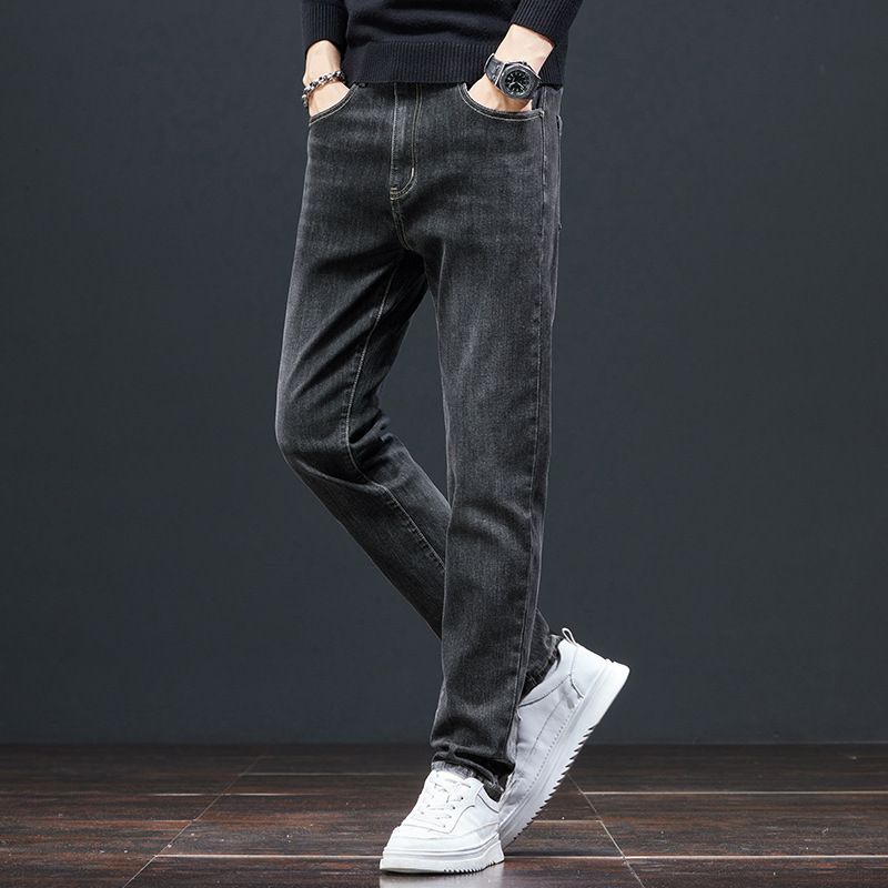 専門店の撤回 ~ ベルベットの高級秋冬ジーンズ男性のファッションブランドの弾力的な修身直筒韓国版カジュアルパンツ