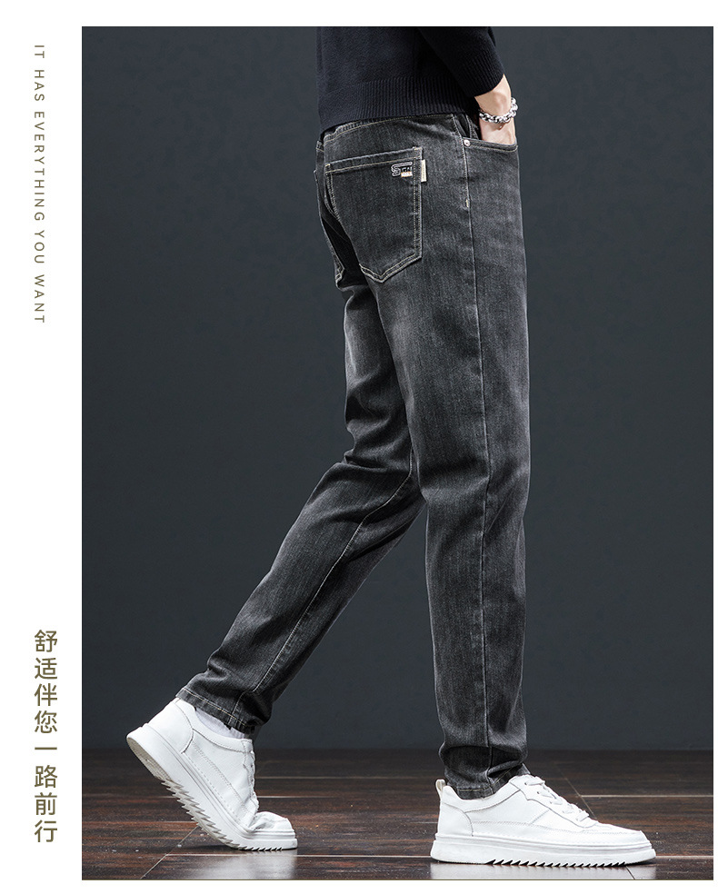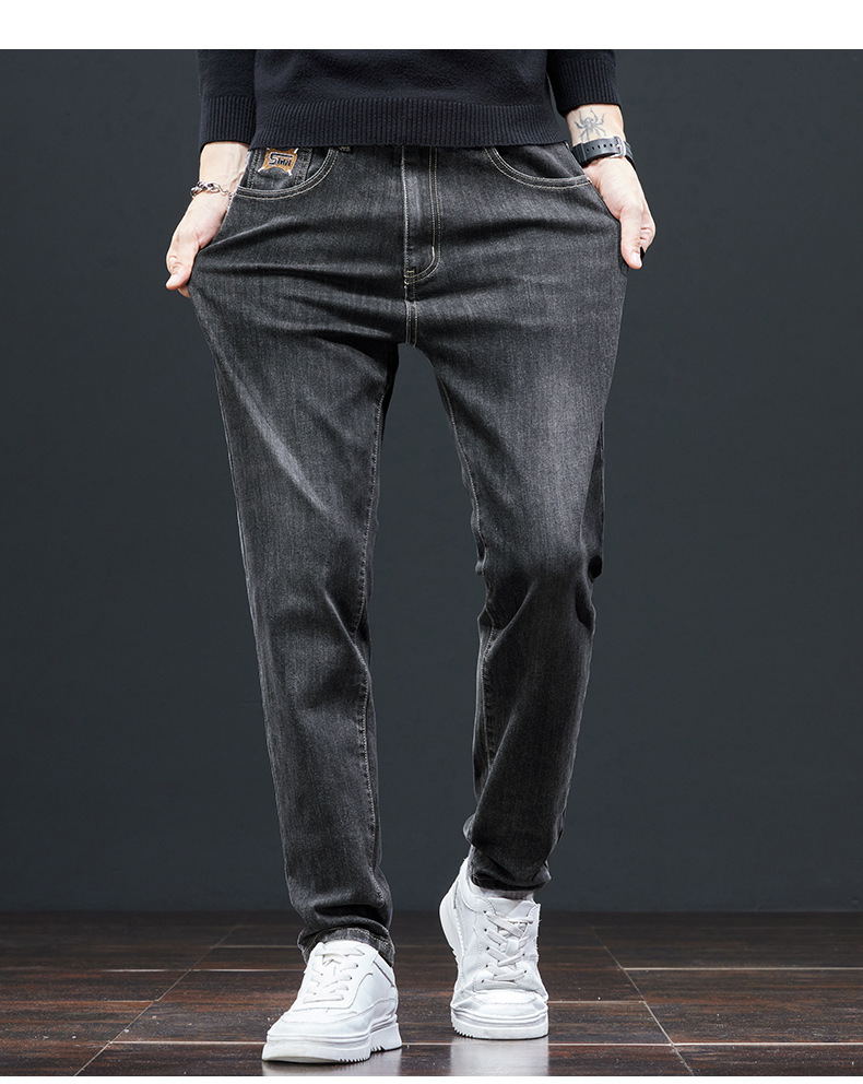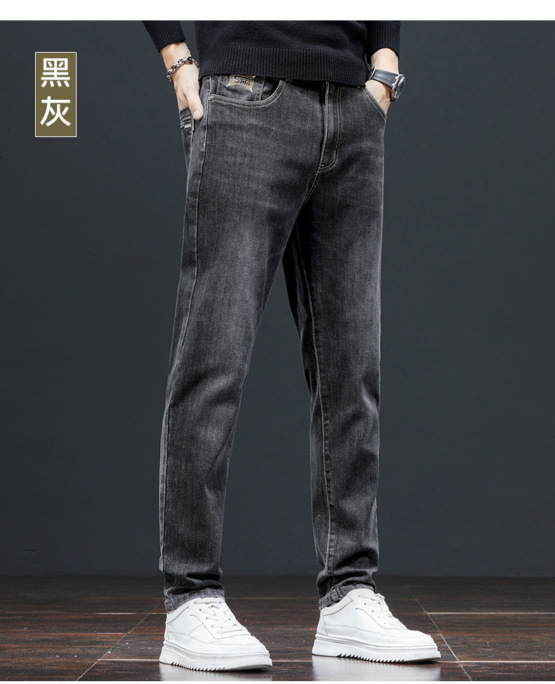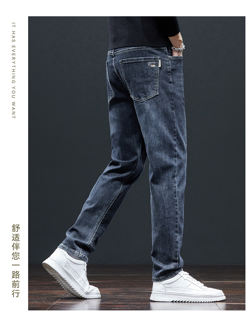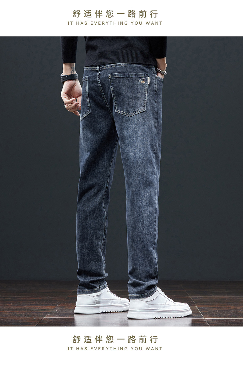 秋冬季高弹力男士牛仔裤直筒修身小脚中高腰深档宽松商务休闲裤潮