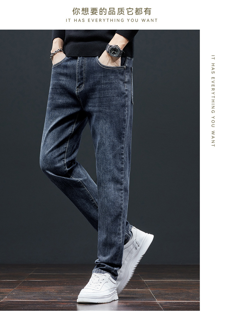 男士牛仔裤直筒修身男裤2025新款潮牌冬季高端男款休闲加绒长裤子