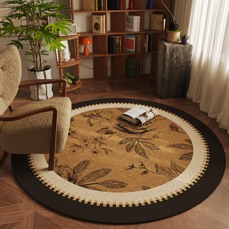 ラウンドカーペットフレンチミッドセンチュリースタイルリビングルームカーペット寝室ベッドサイド書斎ロッキングチェアフロアマットレトロノンスリップフロアマット