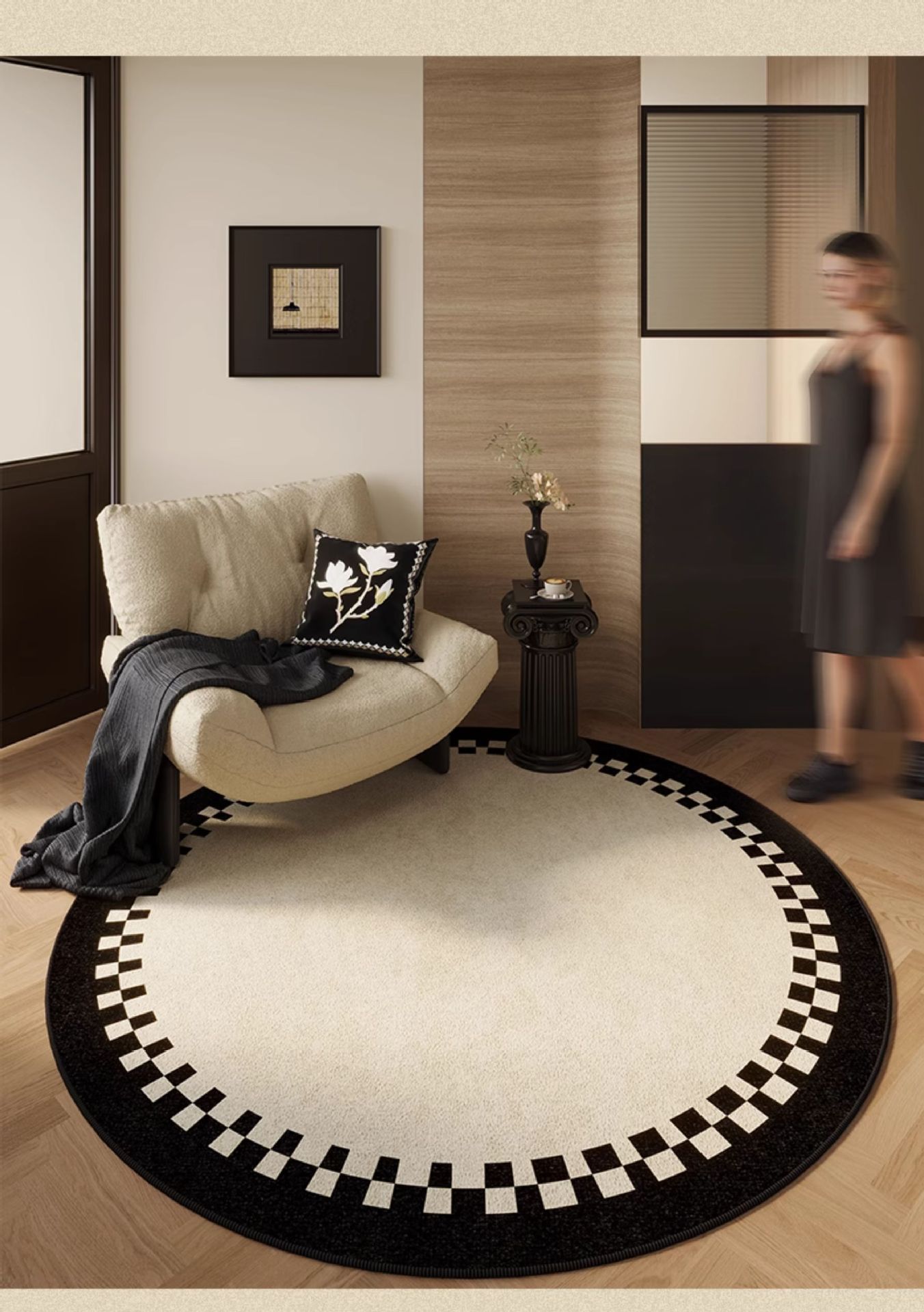 圆形地毯客厅卧室床边中古风2025新款法式复古衣帽间椅子摇椅地垫