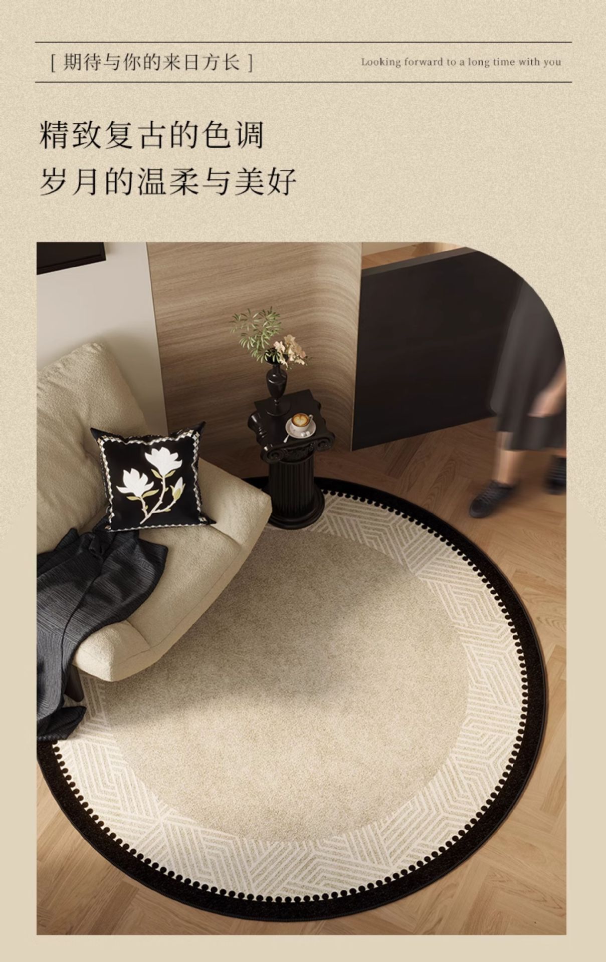 ラウンドカーペットリビングルームアンティークスタイルフレンチレトロベッドルームベッドサイドブランケットクロークフロアマットハイエンド2025新しいスタイル