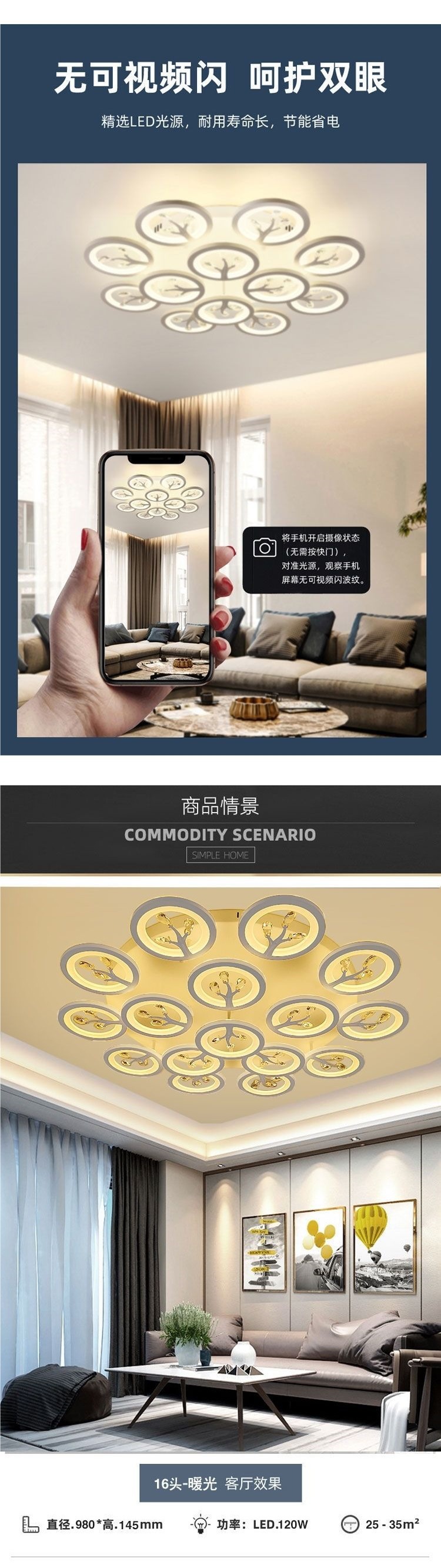 新款发财树卧室客厅吸顶灯简约现代超亮led智能语音带遥控吸顶灯