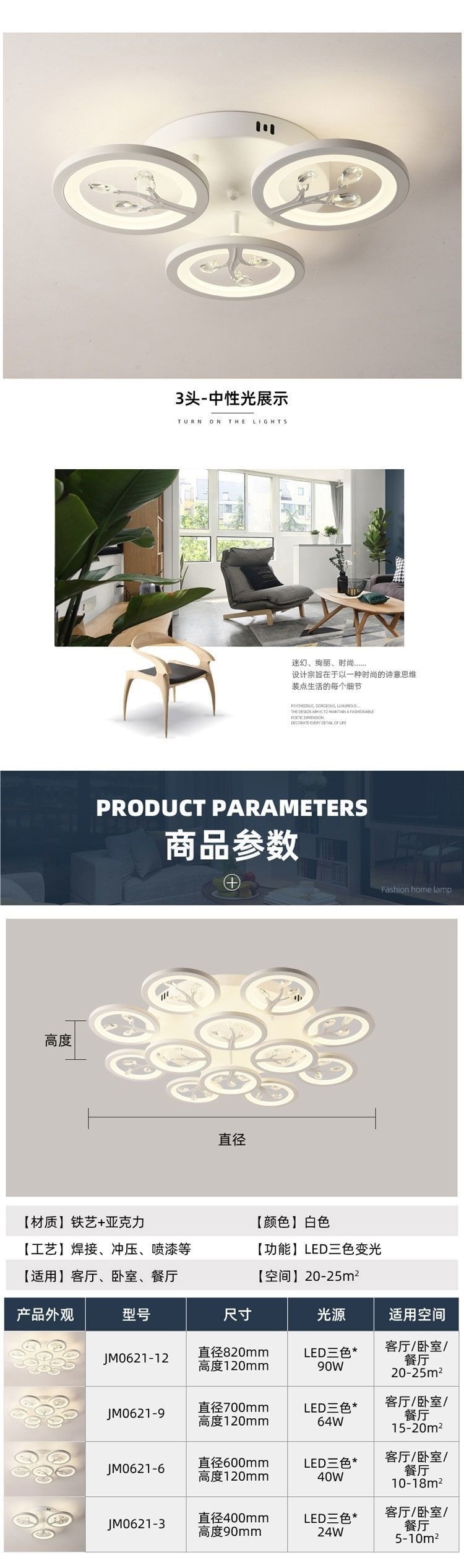 北欧風リビングルームランプ、シンプルな寝室ランプ、シーリングランプ、リビングルームのメインランプ、中山製照明器具、レストラン用LED