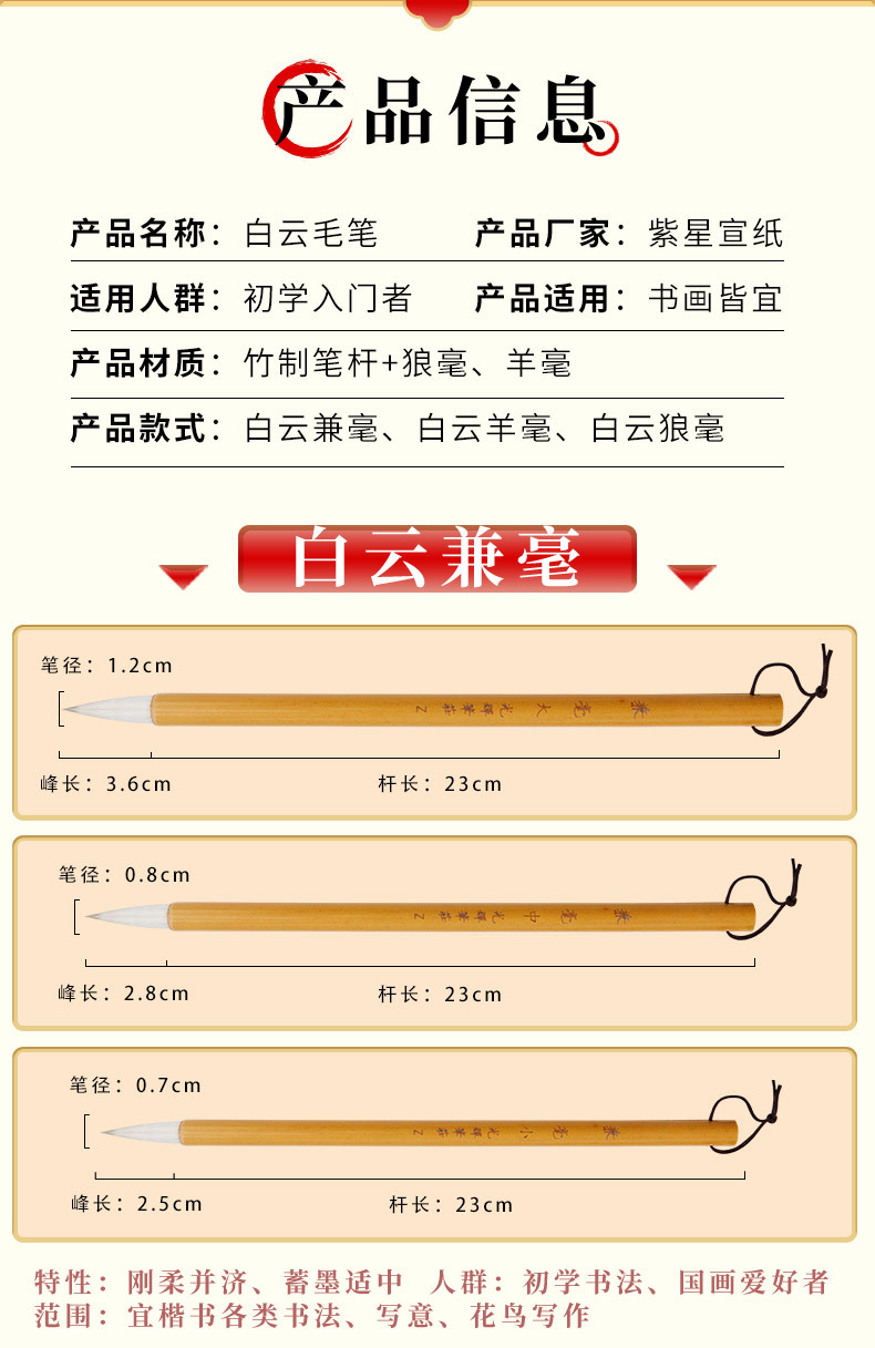 卸売り学生兼ミリ白雲毛筆訓練班書道国画練習大中小羊ミリ狼毛筆