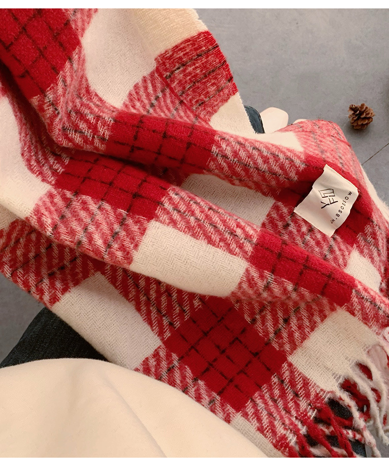 新年の雰囲気感の赤い格子のマフラー秋冬はカシミヤの新型の保温防寒のフリンジデザインのマフラーをまねます。