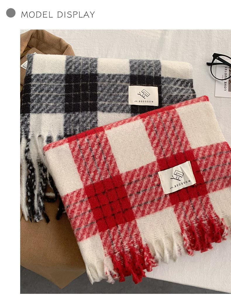 马海毛围巾韩系氛围感秋冬格子围巾仿羊绒保暖披肩情侣百搭围脖