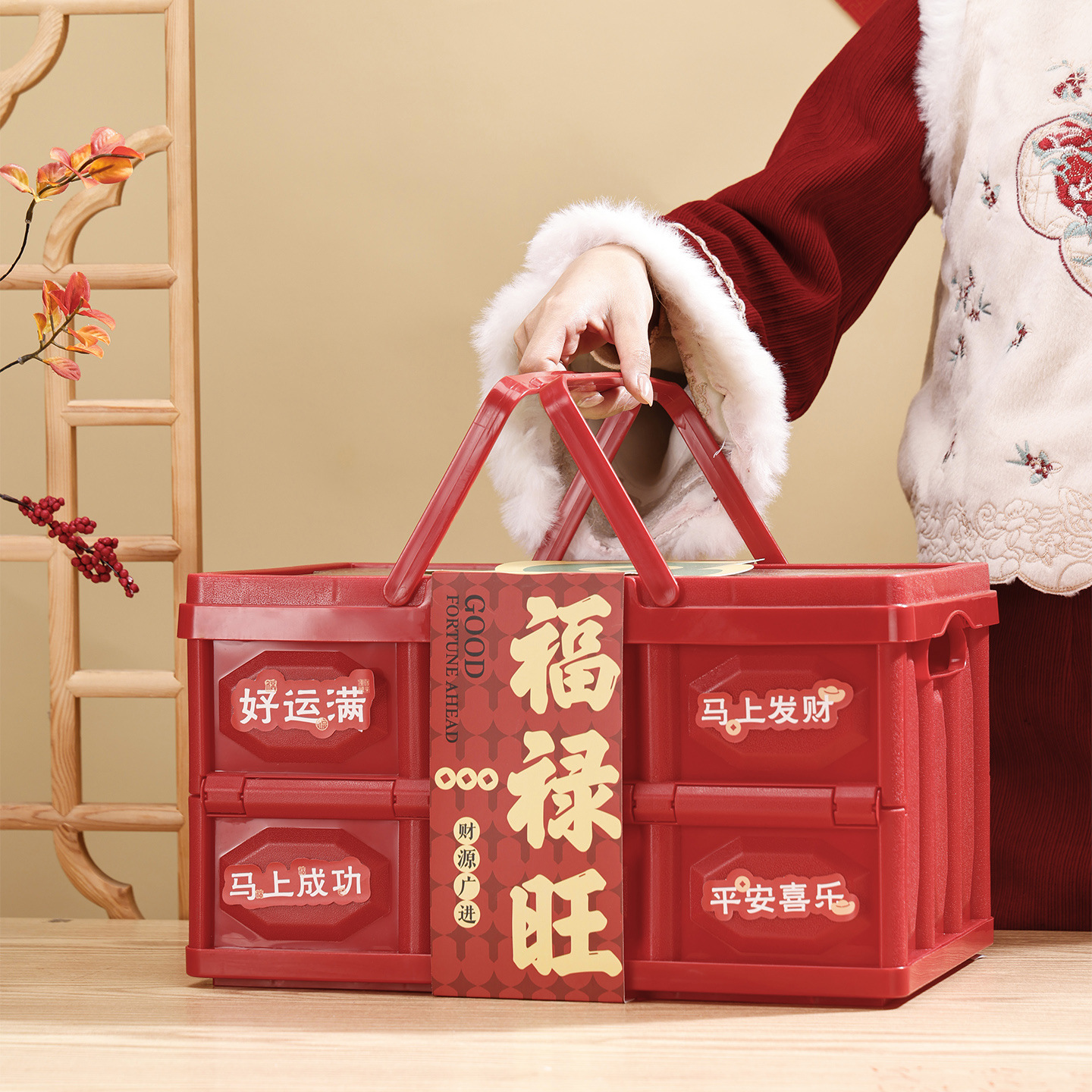 2026新年礼盒红色塑料手提箱大号年会伴手礼可折叠收纳箱年货礼盒