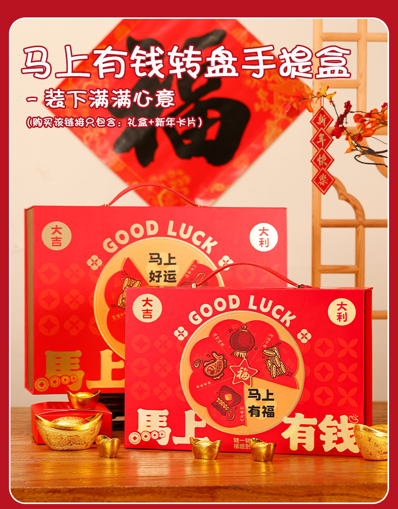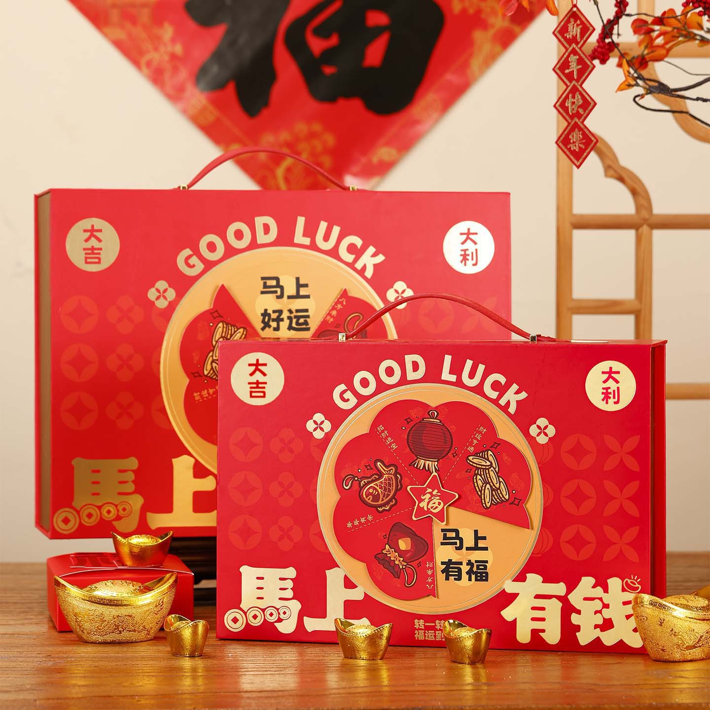 2026创意新年礼盒包装马年春节幸运转盘手提礼品盒过年年货礼盒空