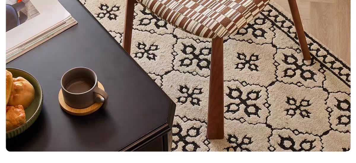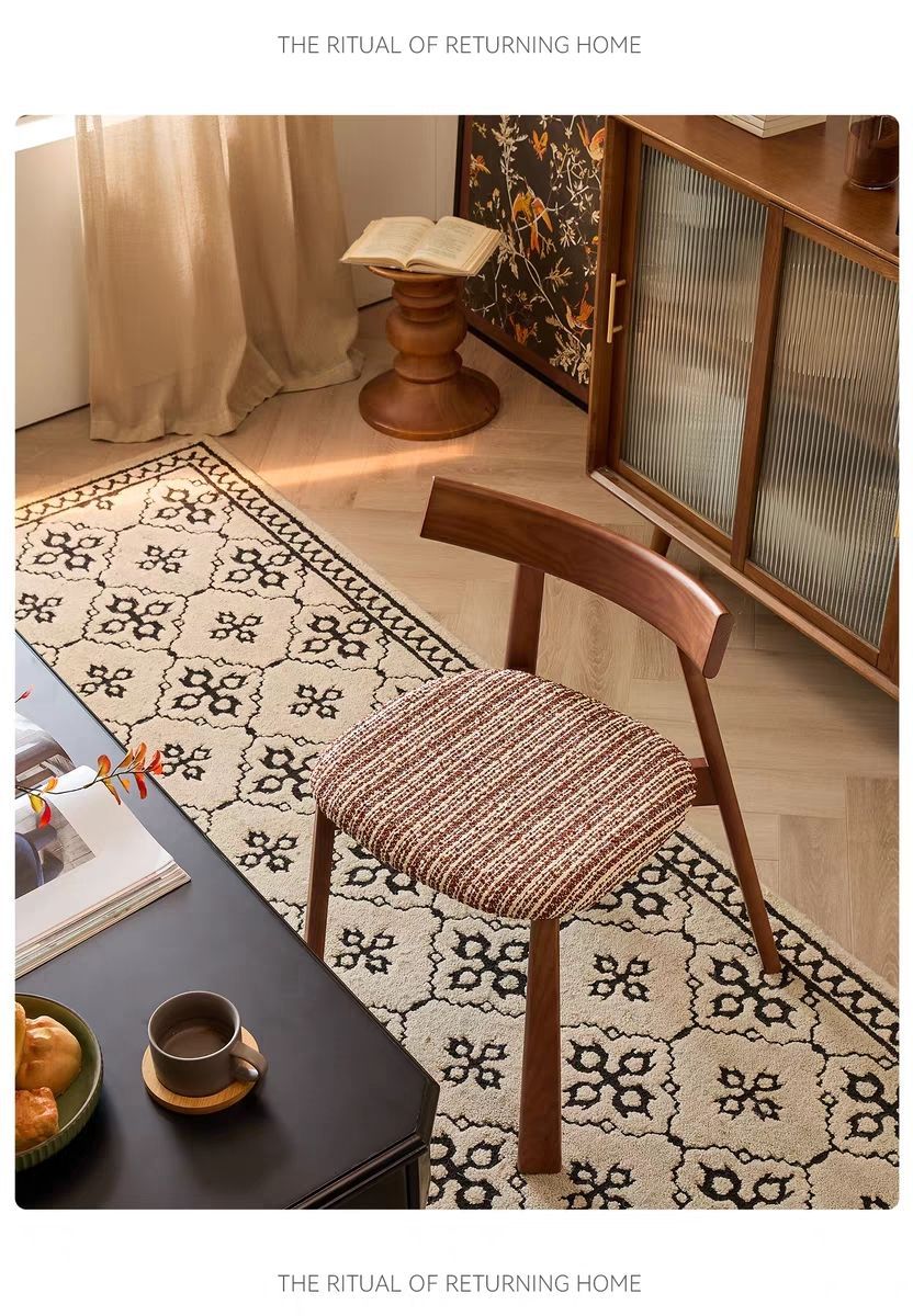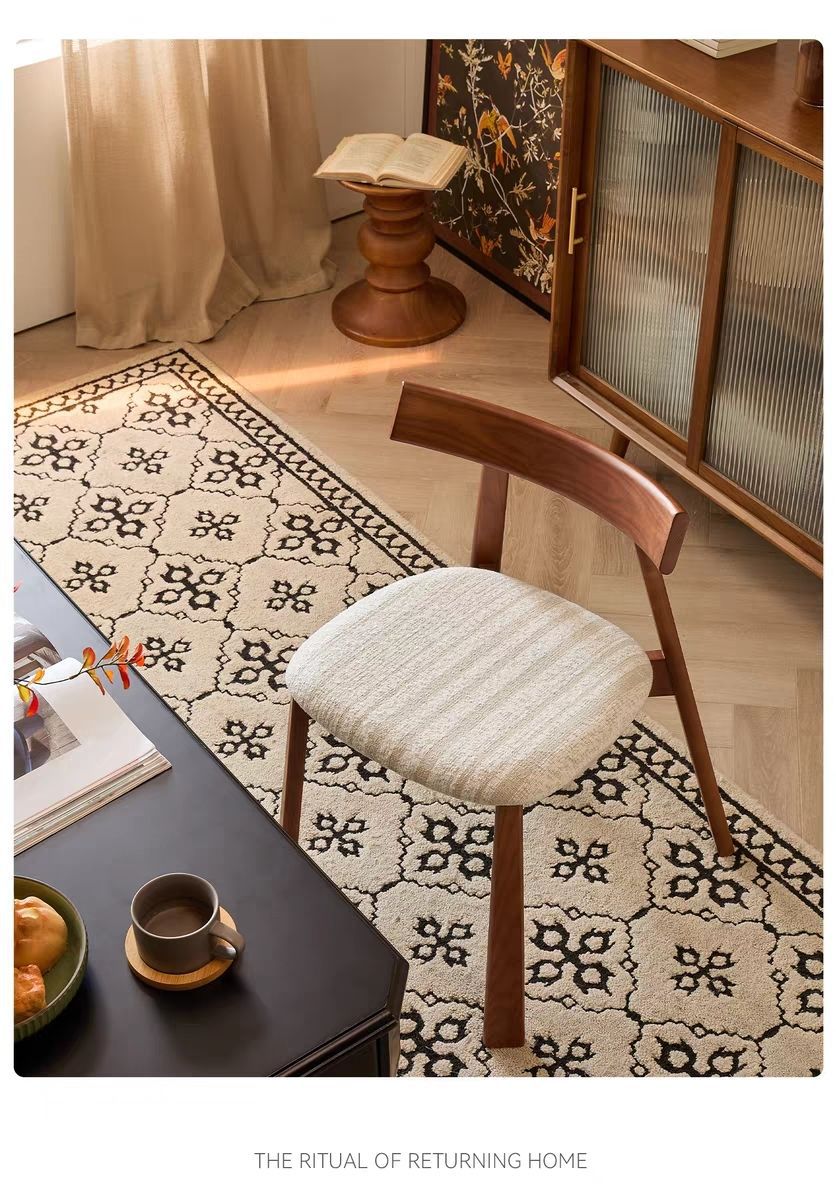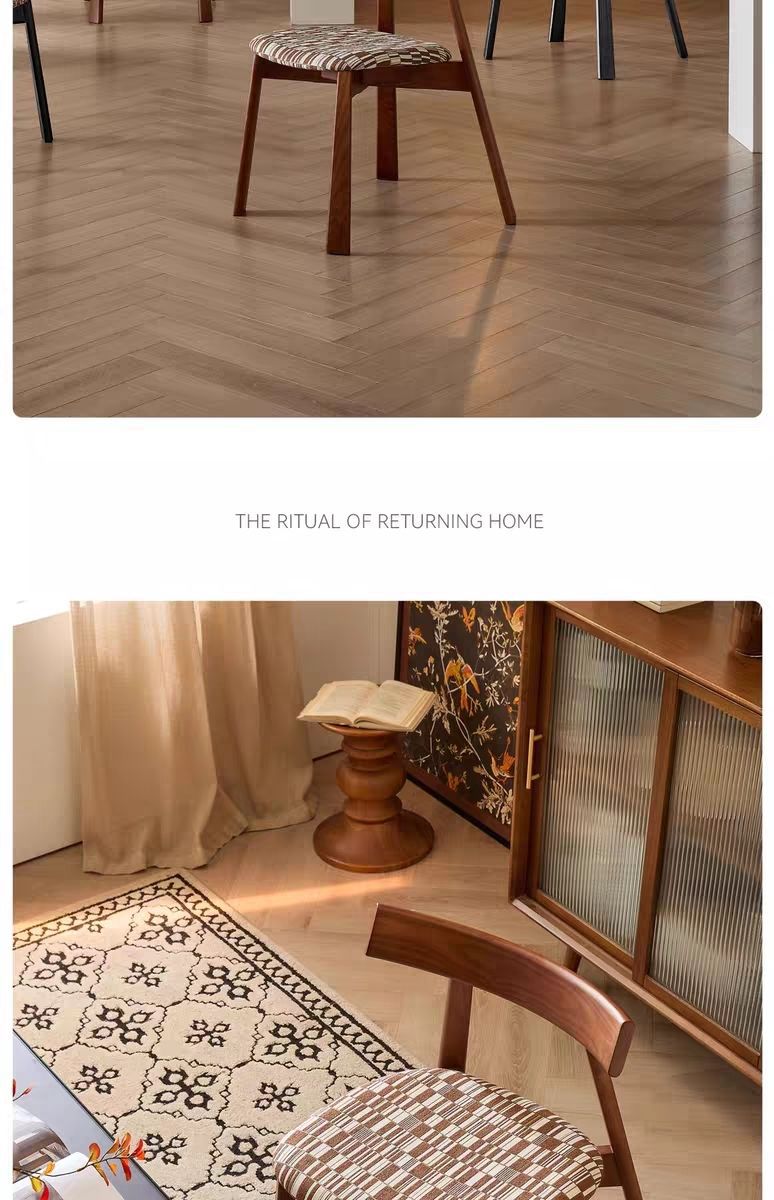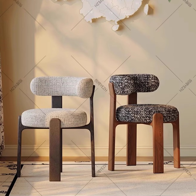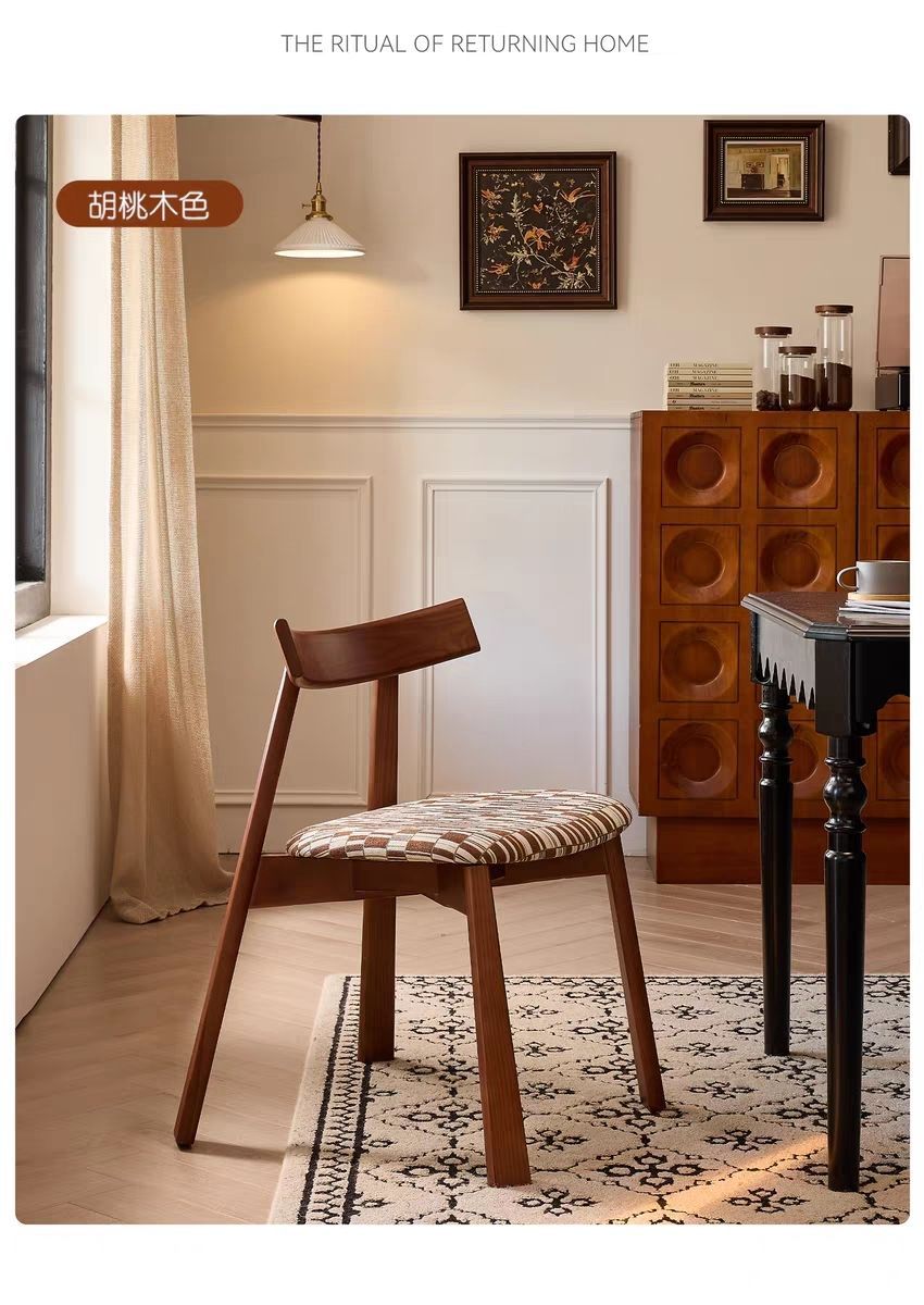 中古风实木餐椅家用复古椅子千鸟格布艺靠背椅设计师款休闲餐厅椅