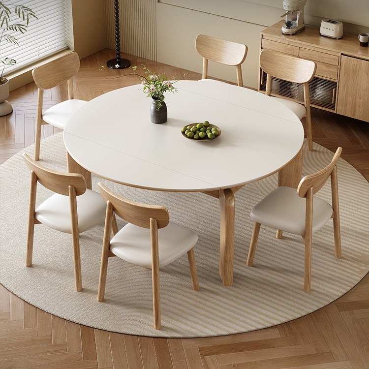 クリーム風実木岩板テーブルと椅子の伸縮組み合わせ小戸型折り畳み円形テーブル多機能家庭用食卓