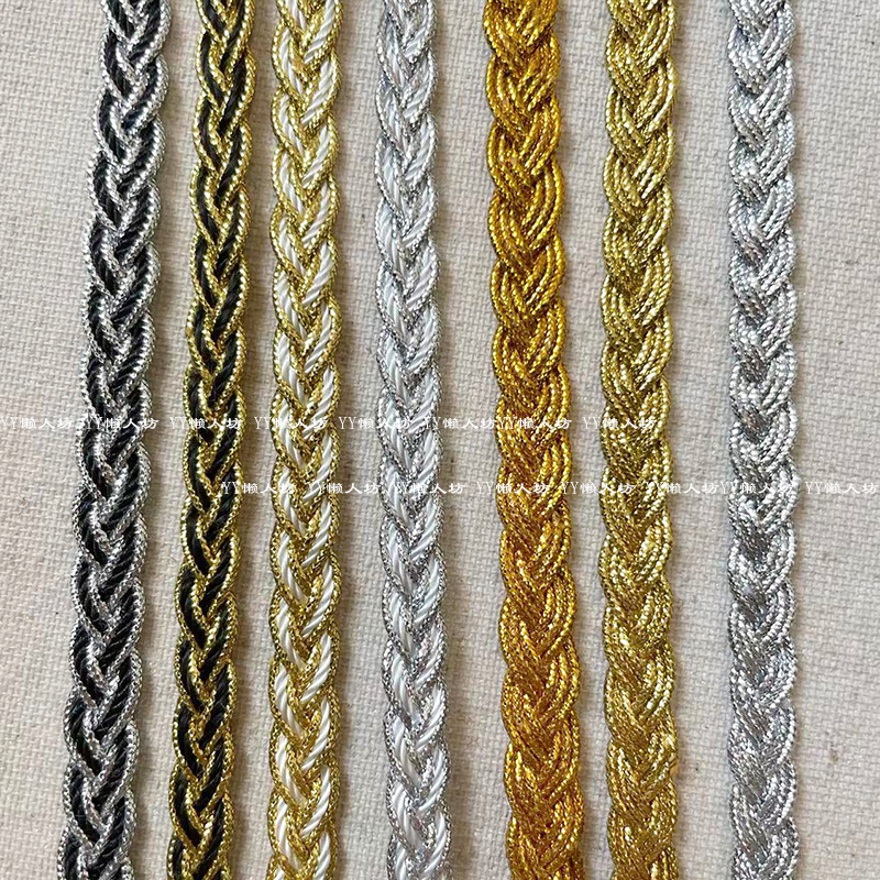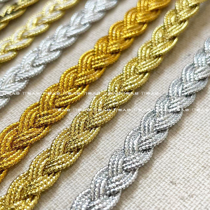 9米金银丝花边辅料 金色银色辫子绳麻花韩国丝织带diy服装装饰条