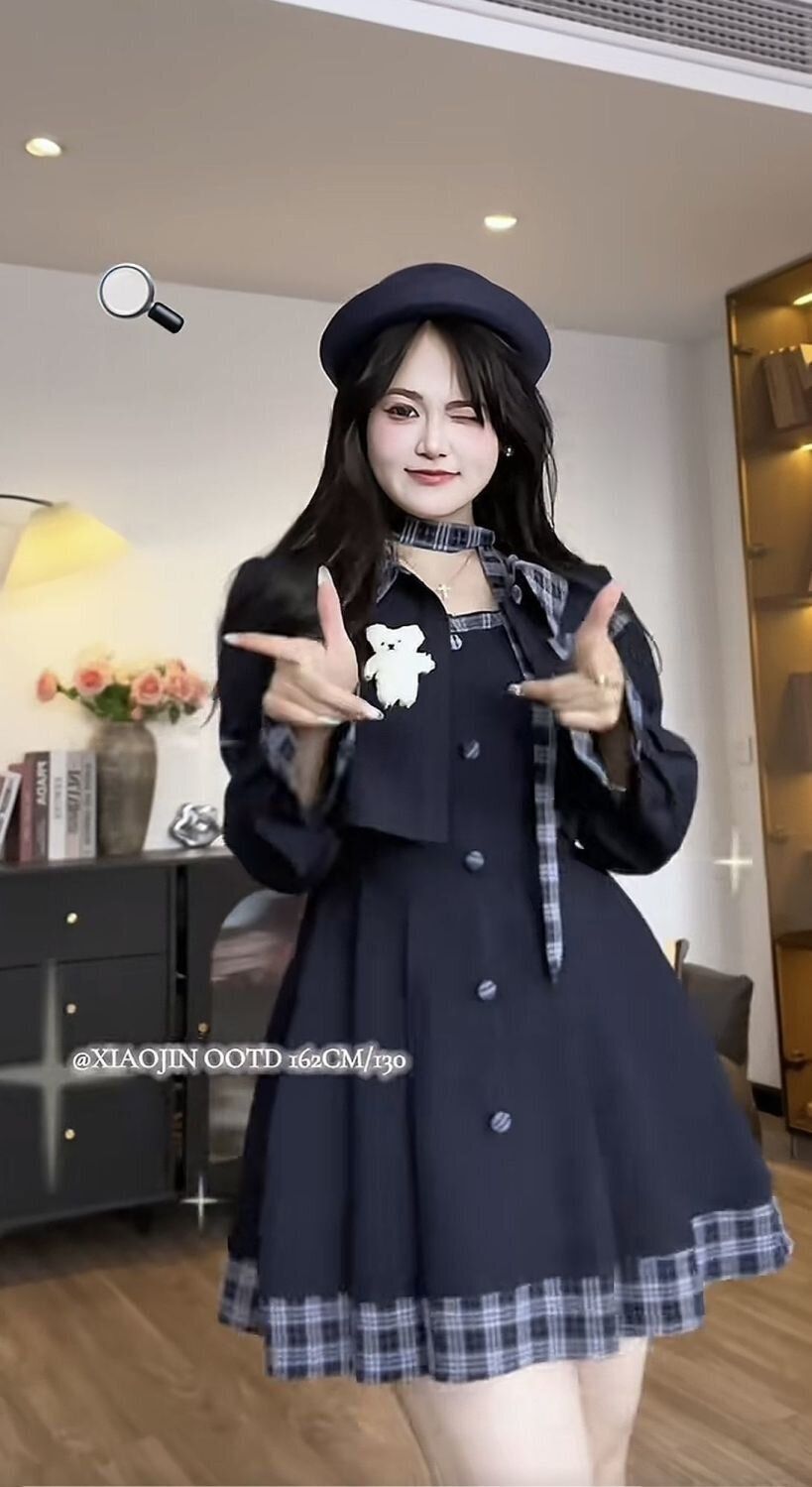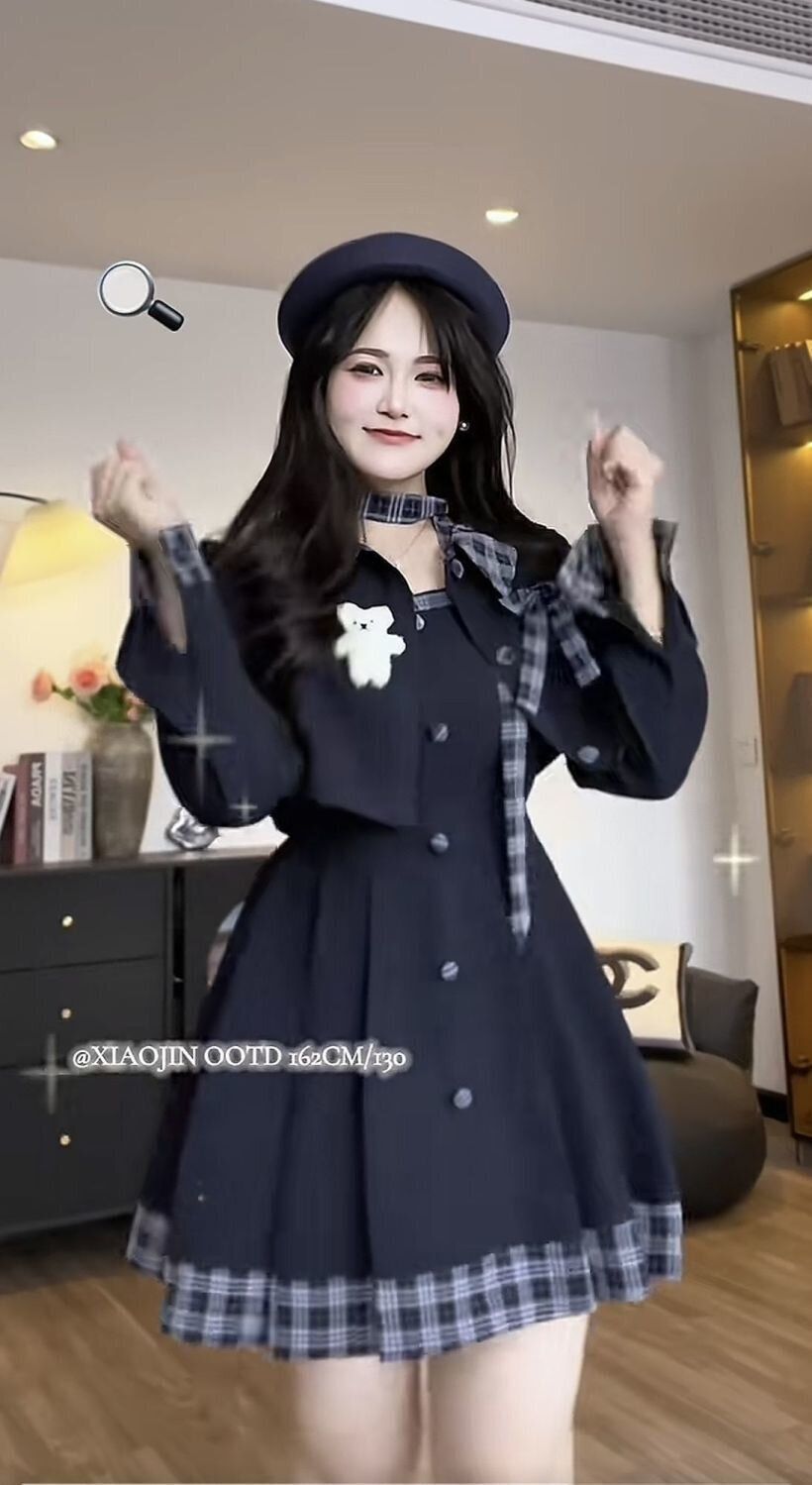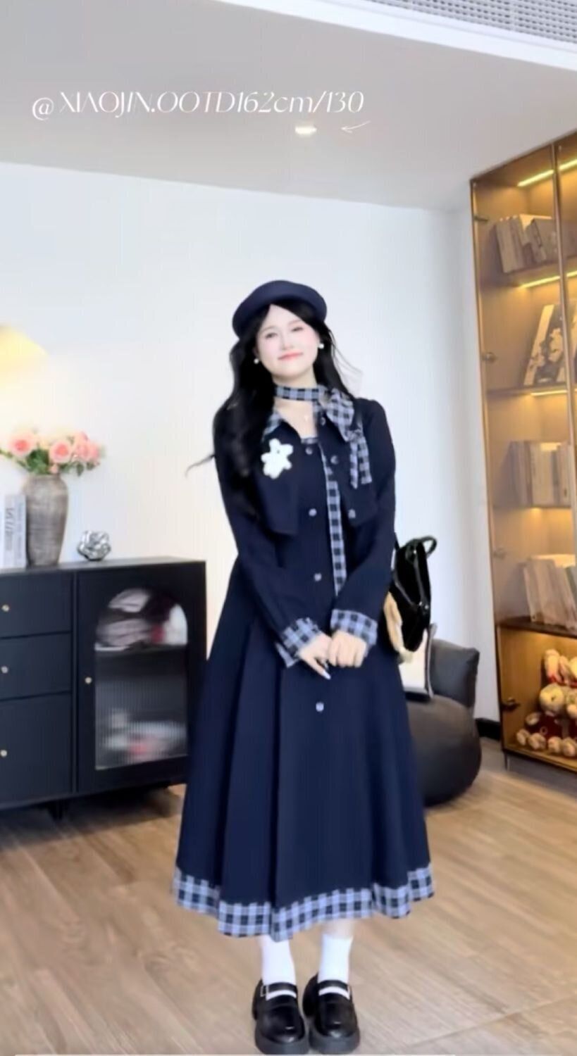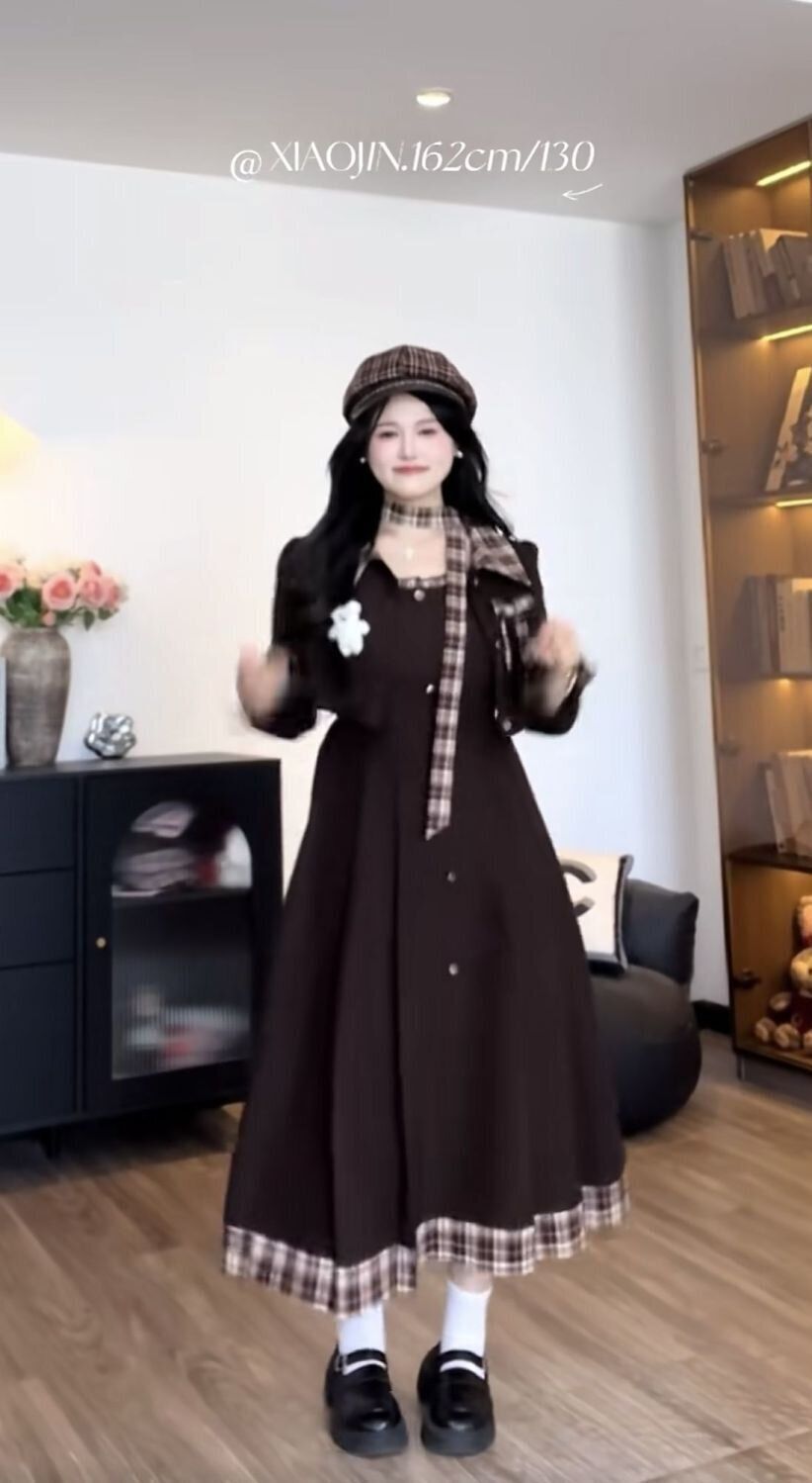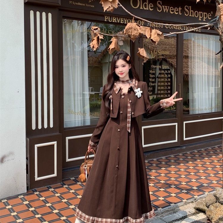 海盐栗子2025大码胖mm法式复古女秋冬格子西装外套连衣裙两件套