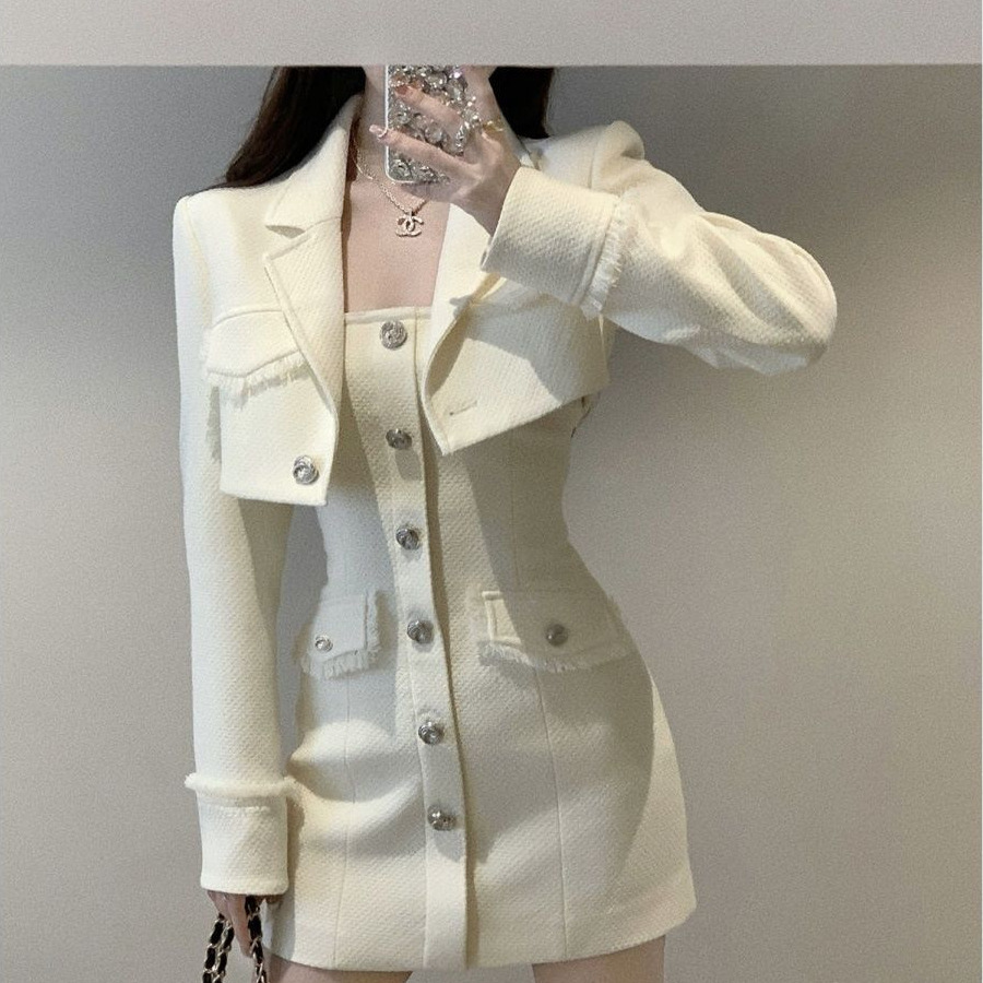 小香風スーツ女性2024秋女装高級感フリンジコート高腰着痩せスカート2点セット