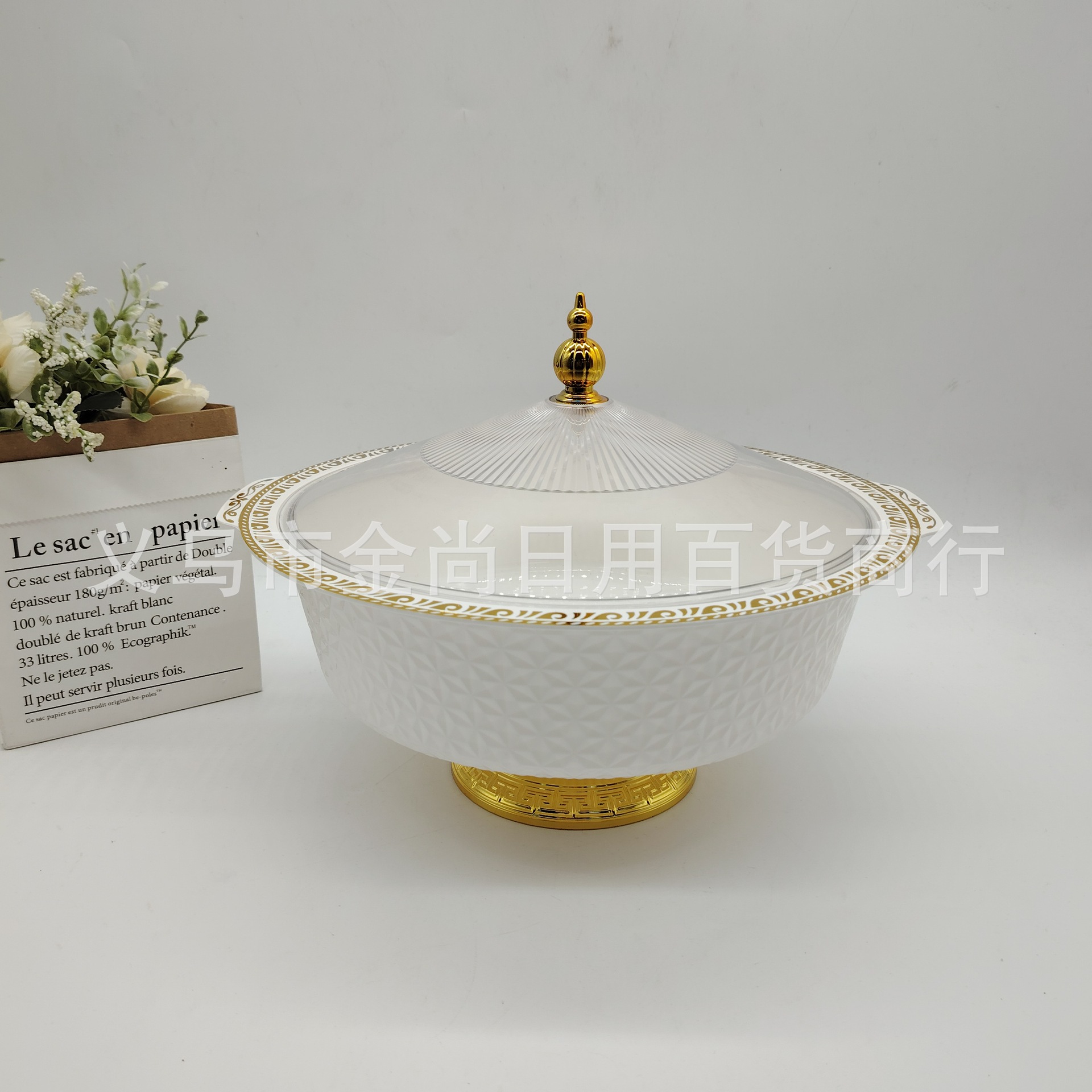 クリーム白手提げ果物バスケットプラスチック金辺デスクトップ小売雑物皿大中小セット果物皿