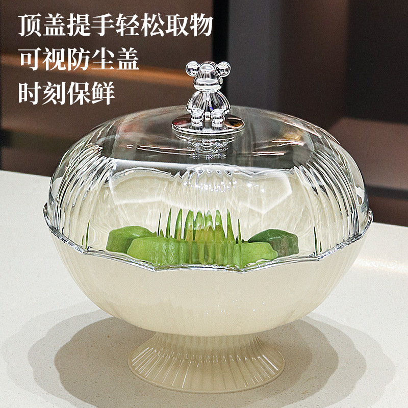 2025新款带盖水果盘家用客厅专用零食收纳盒塑料PET加厚防尘餐盘