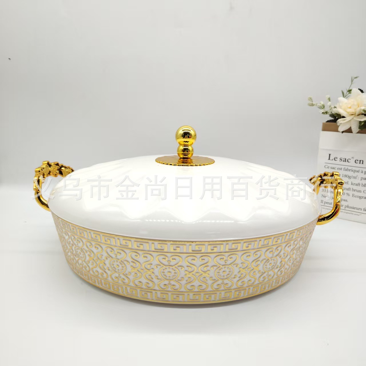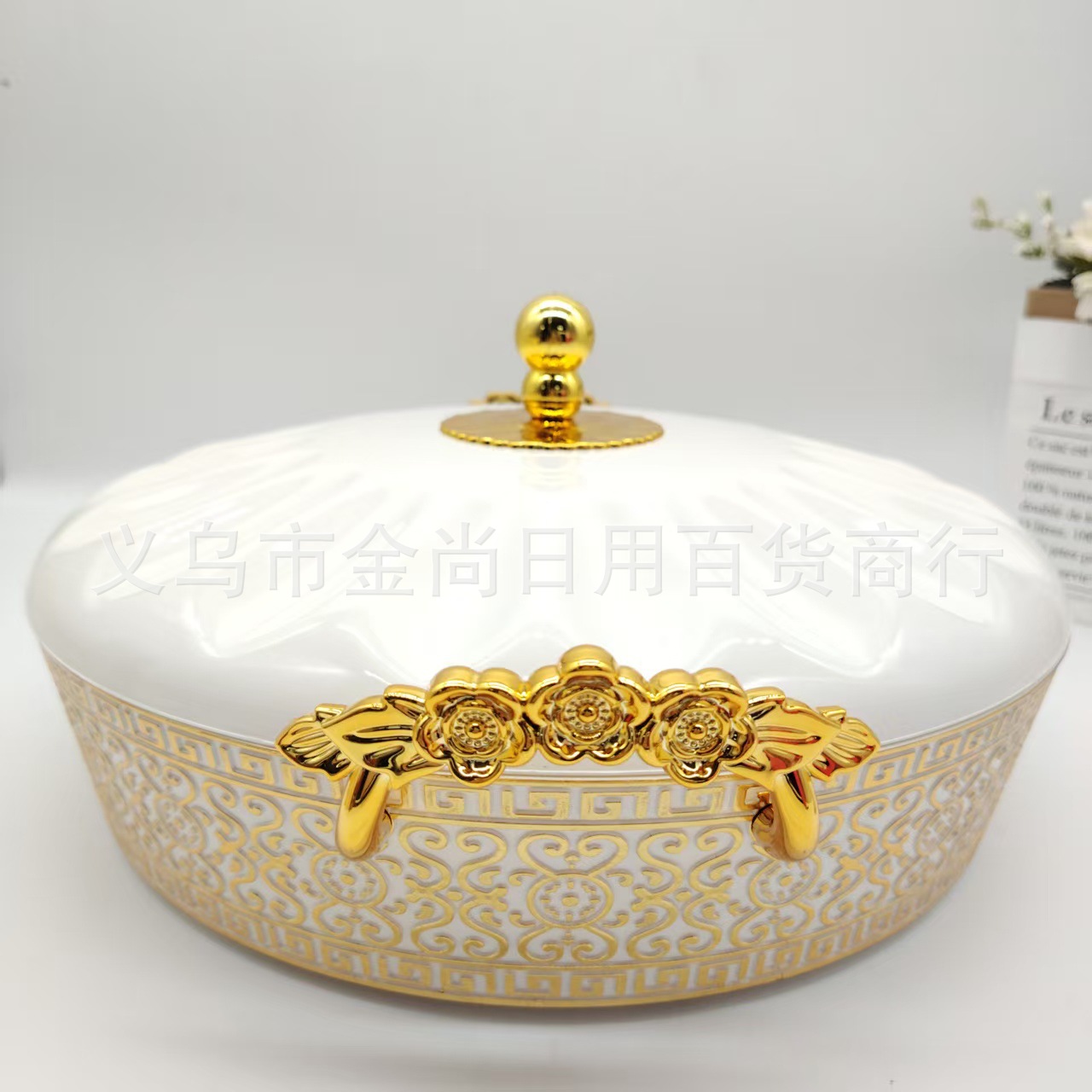 欧式奶白带盖轻奢欧式水果盘现代家用客厅茶几创意轻奢零食糖果盘