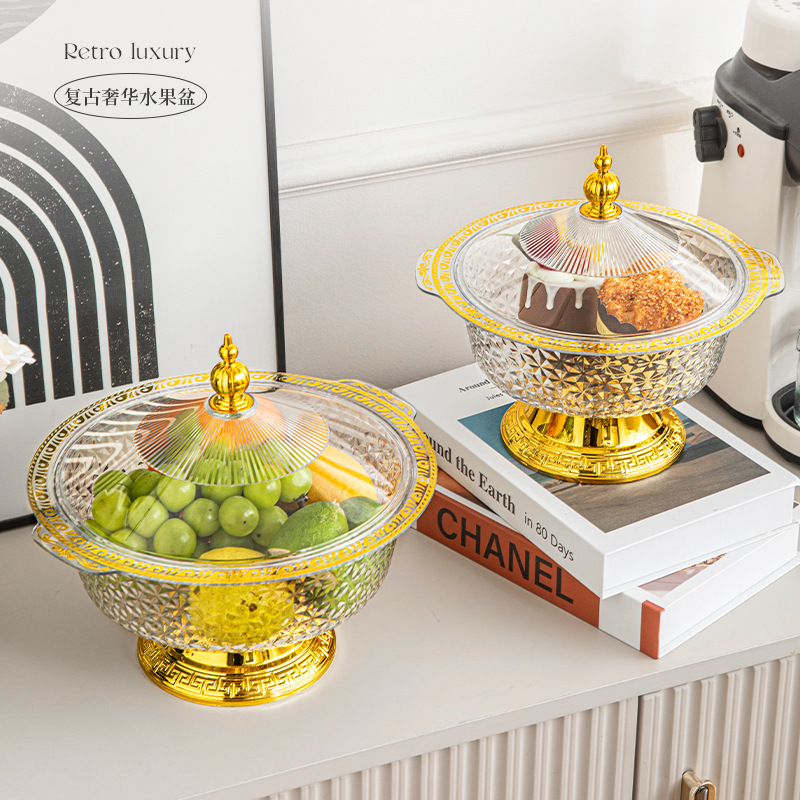 売れ筋新商品フルーツプレート、家庭用リビングルーム用金縁スナックプレート、蓋付きベース付き、クリエイティブなディスプレイプレート、越境卸売