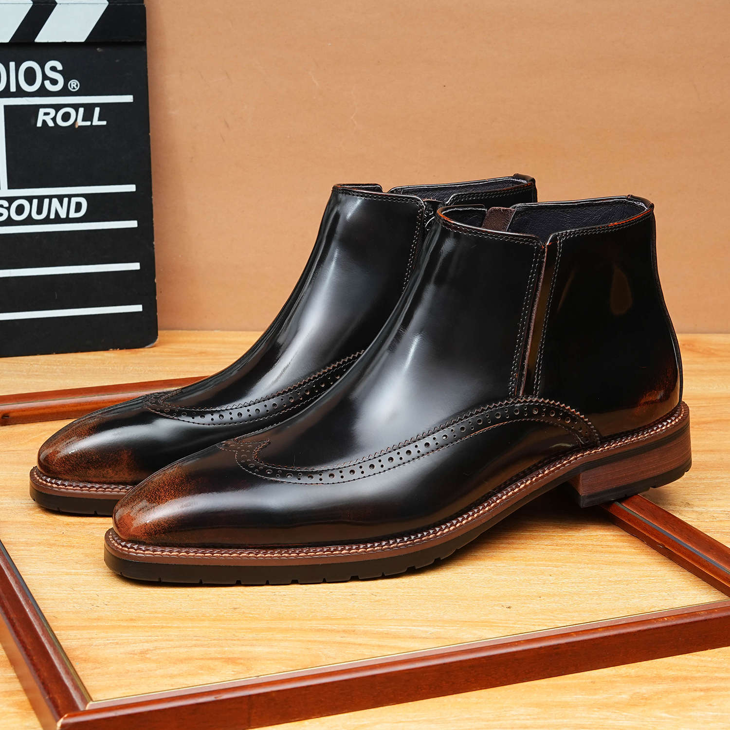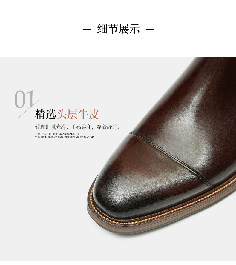 【足】英伦尖头雕花皮鞋男高帮西装正装男士皮靴商务手工切尔西靴