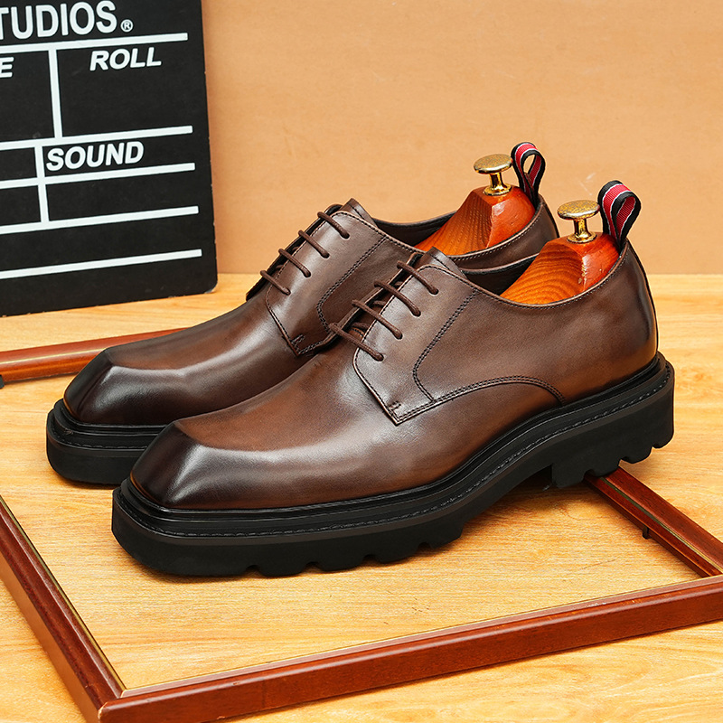 【Vip専用】厚い底の男性靴の本革牛革の英倫の四角い頭の広い足のビジネスカジュアルな正装のダービー靴