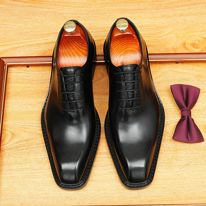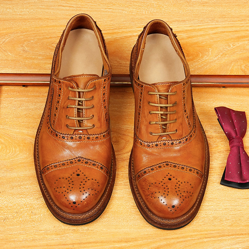 【Vip専用】ビジネス正装革靴男茶色スーツ靴角頭手磨きレトロオックスフォード男靴