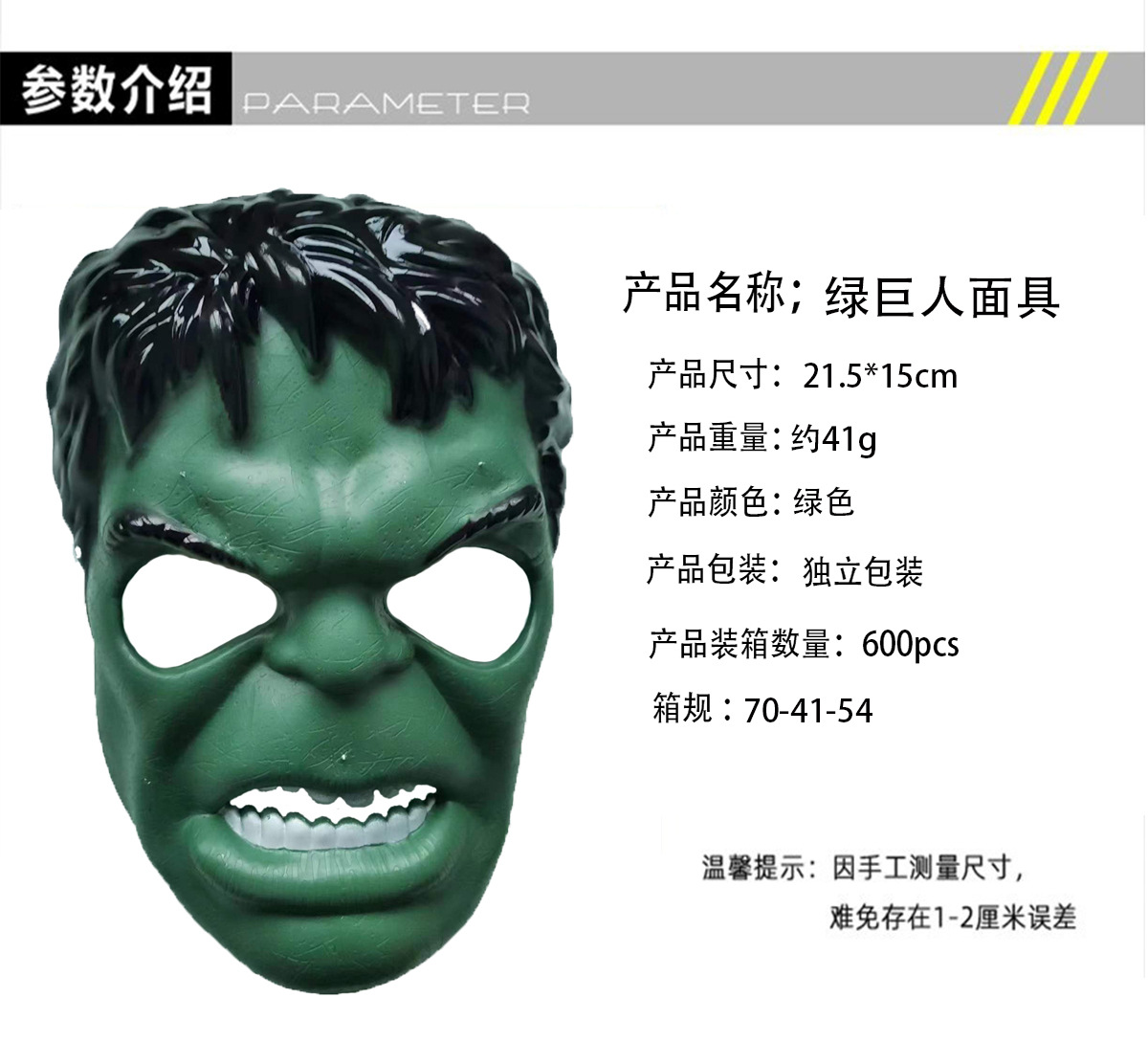 アベンジャーズのマスク緑の巨人の子供のマスクのハロウィーンのカーニバルのパーティーの子供のマスクの露店の卸売り