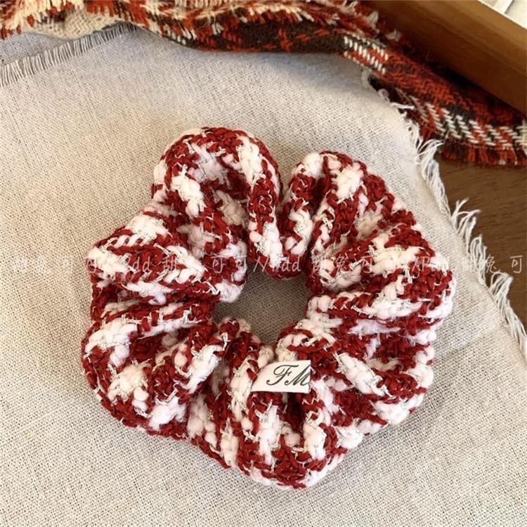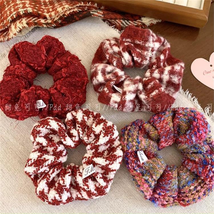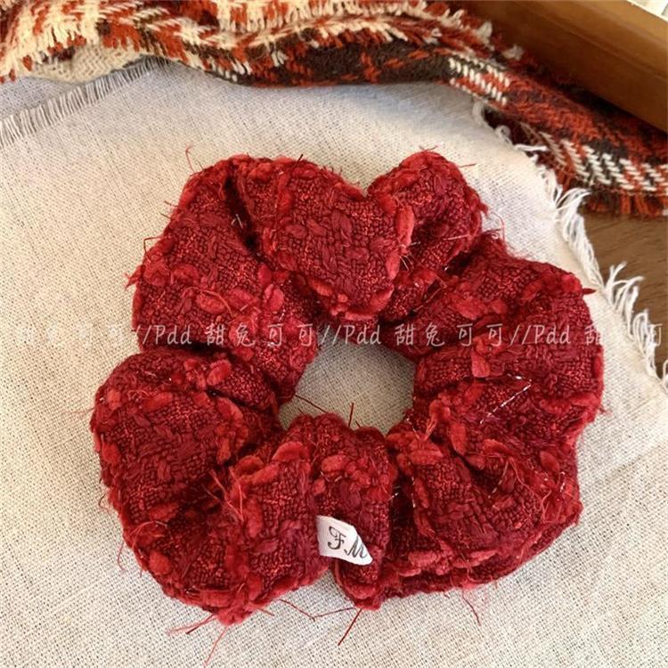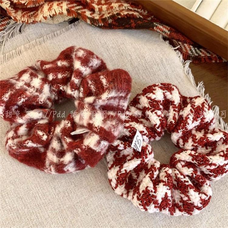 圣诞新年氛围感红色毛线编织大肠发圈节日喜庆头绳丸子头皮筋头饰