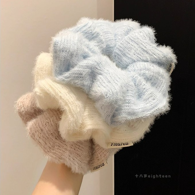 韩系奶蓝色毛绒大肠发圈女慵懒风针织毛线发绳扎头发皮筋秋冬发饰