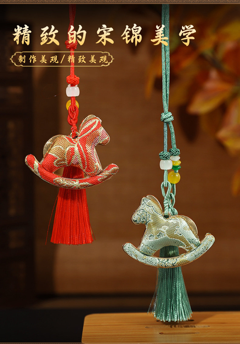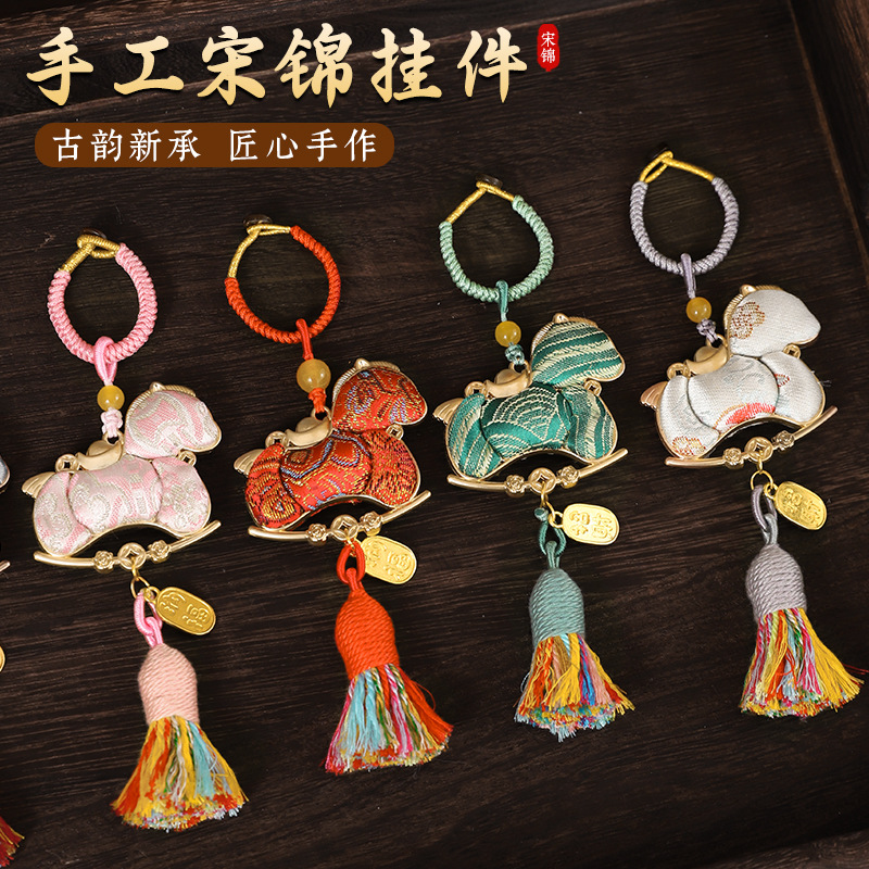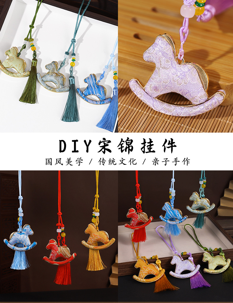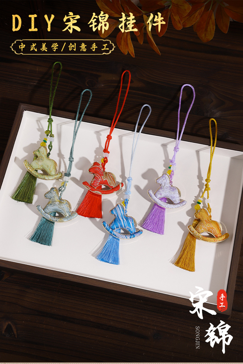 仿宋锦摇摇马挂饰钥匙扣材料包DIY吊坠配车挂件活动手工礼品