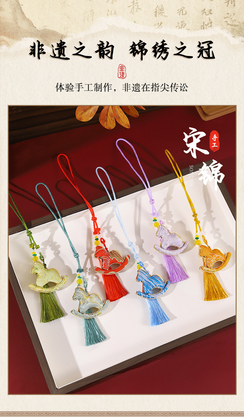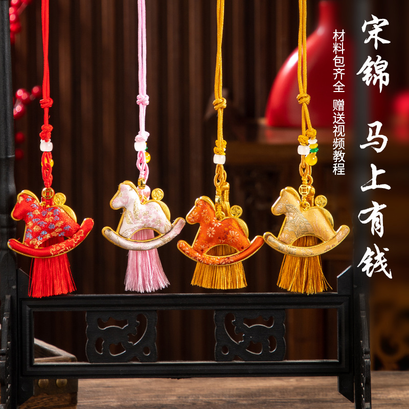 正版宋锦挂饰手工DIY成品马年过年摆摊小商品小马钥匙扣件材料包