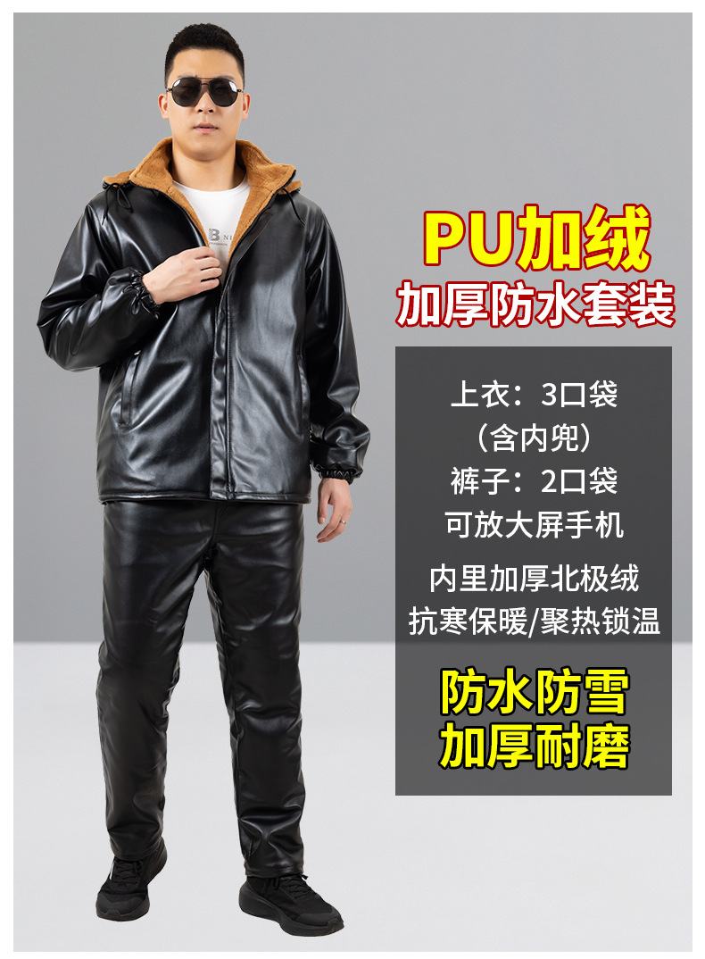 皮衣皮裤套装男加绒加厚外卖骑手代驾防风防水保暖抗寒冬季工作服