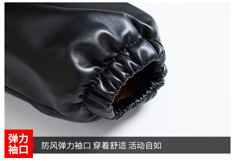 加绒加厚防风防水保暖摩托车骑行代驾外卖工作服男士皮衣皮裤套装