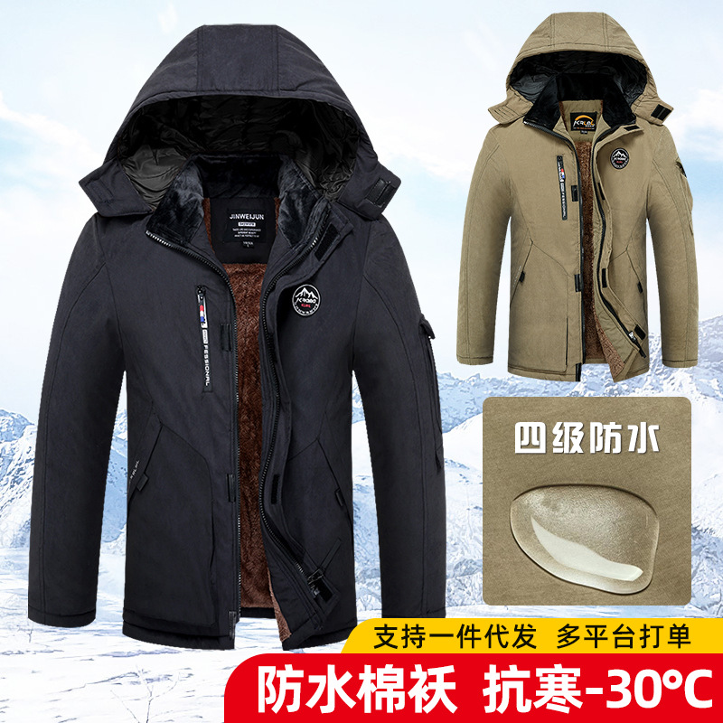 冬の防寒ゆるい保温コートのフロントコートにベルベットの皮服の男性コートは防水防油綿服を厚くした