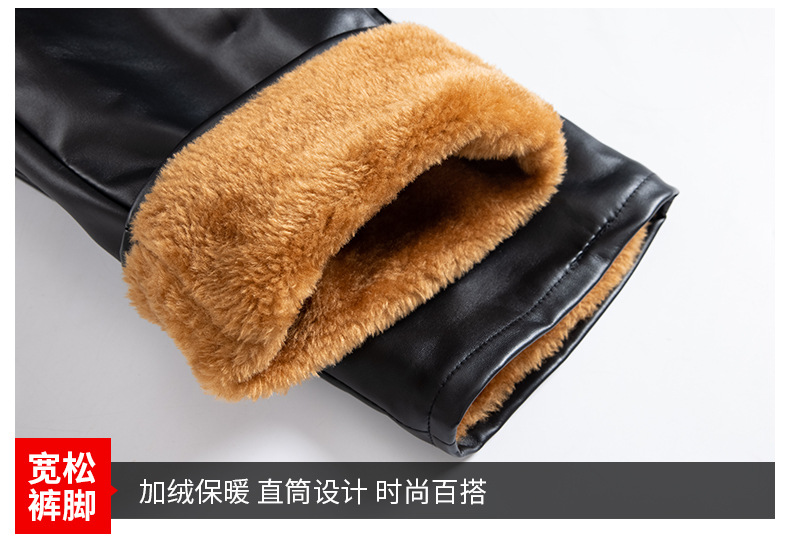 皮衣皮ズボンセットにベルベットをつけて、外に出して油を防ぐ防水作業服の代わりに綿ズボンを運転する冬の保温皮衣男