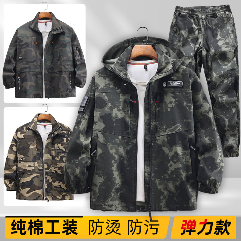 純綿弾力作業服迷彩労働保険服耐摩耗性溶接工場工場現場の屋外工装男性金