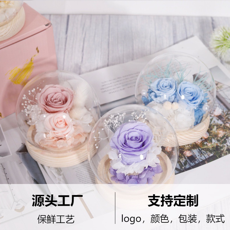 国境を越えた球形ガラスカバーのプリザーブドフラワー、バラ、ヒマワリ、カーネーション、バレンタインデー、母の日ギフト、ホリデーギフト