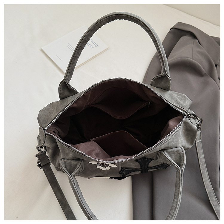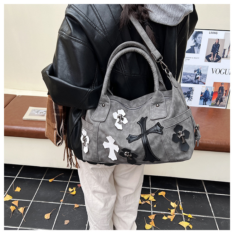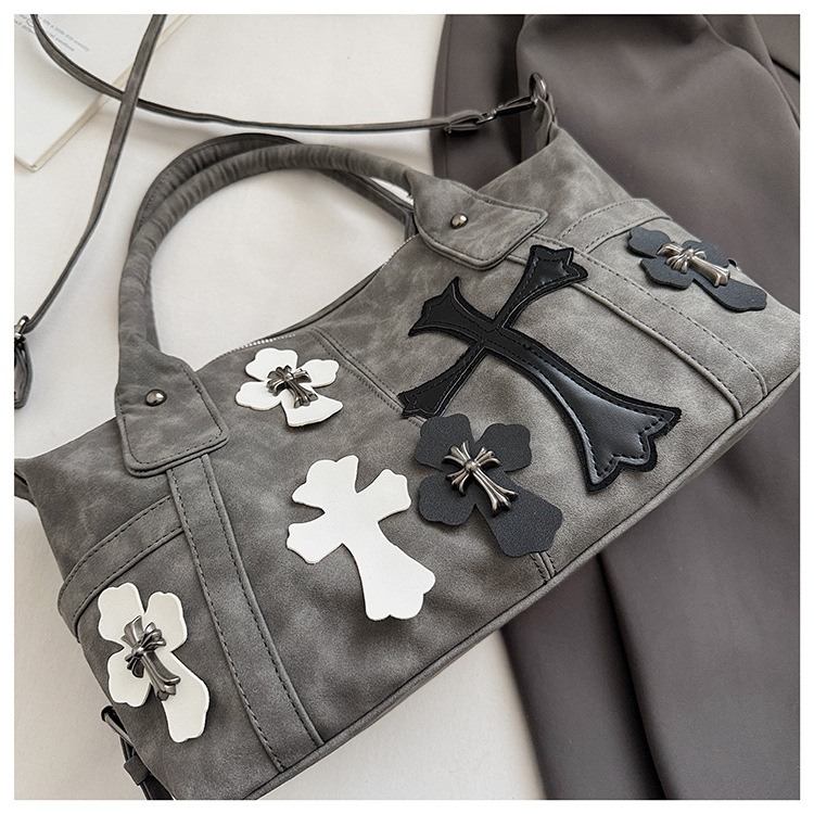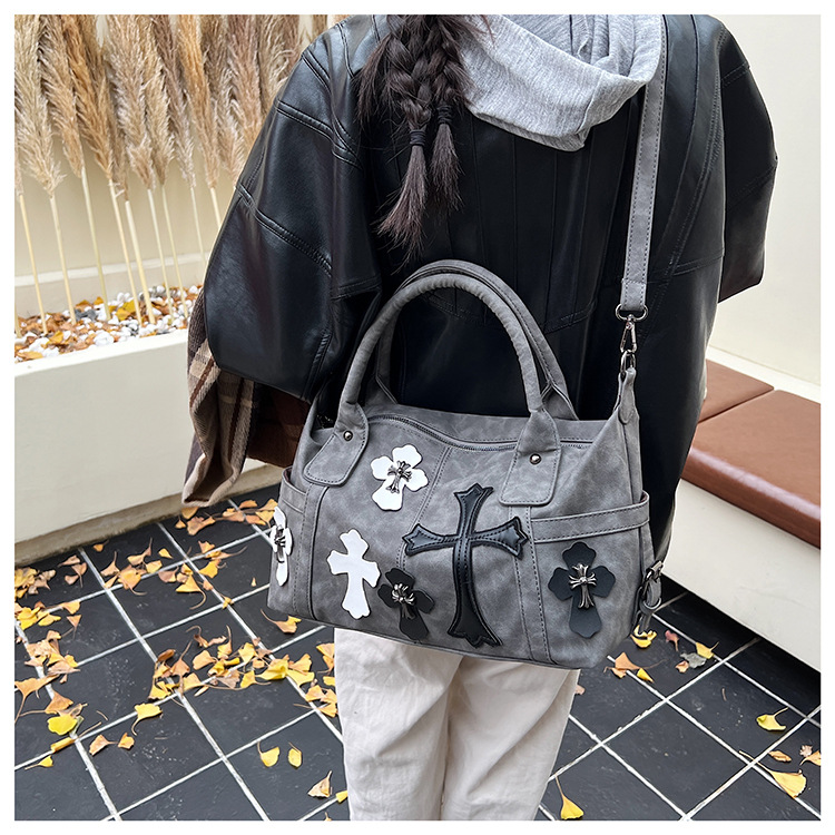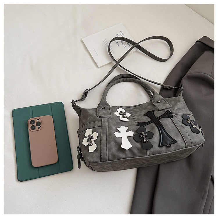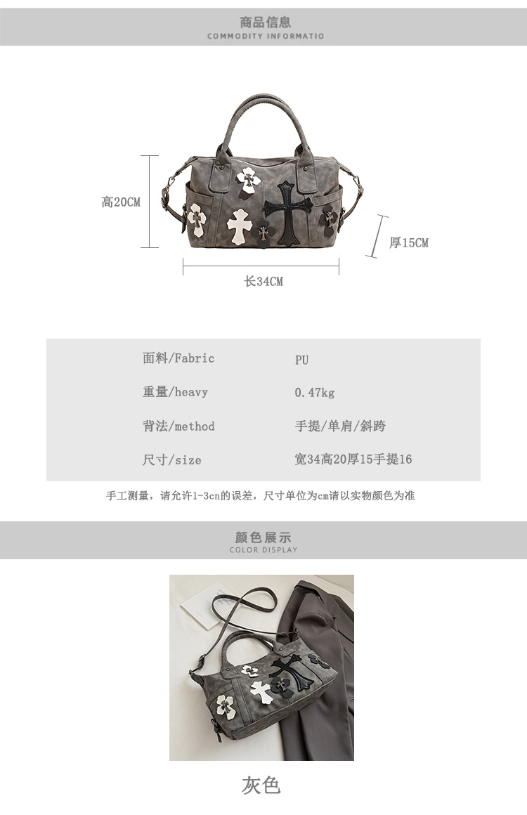 2025新款黑白拼接手提旅行袋十字架大容量单肩斜挎包简约通勤大包