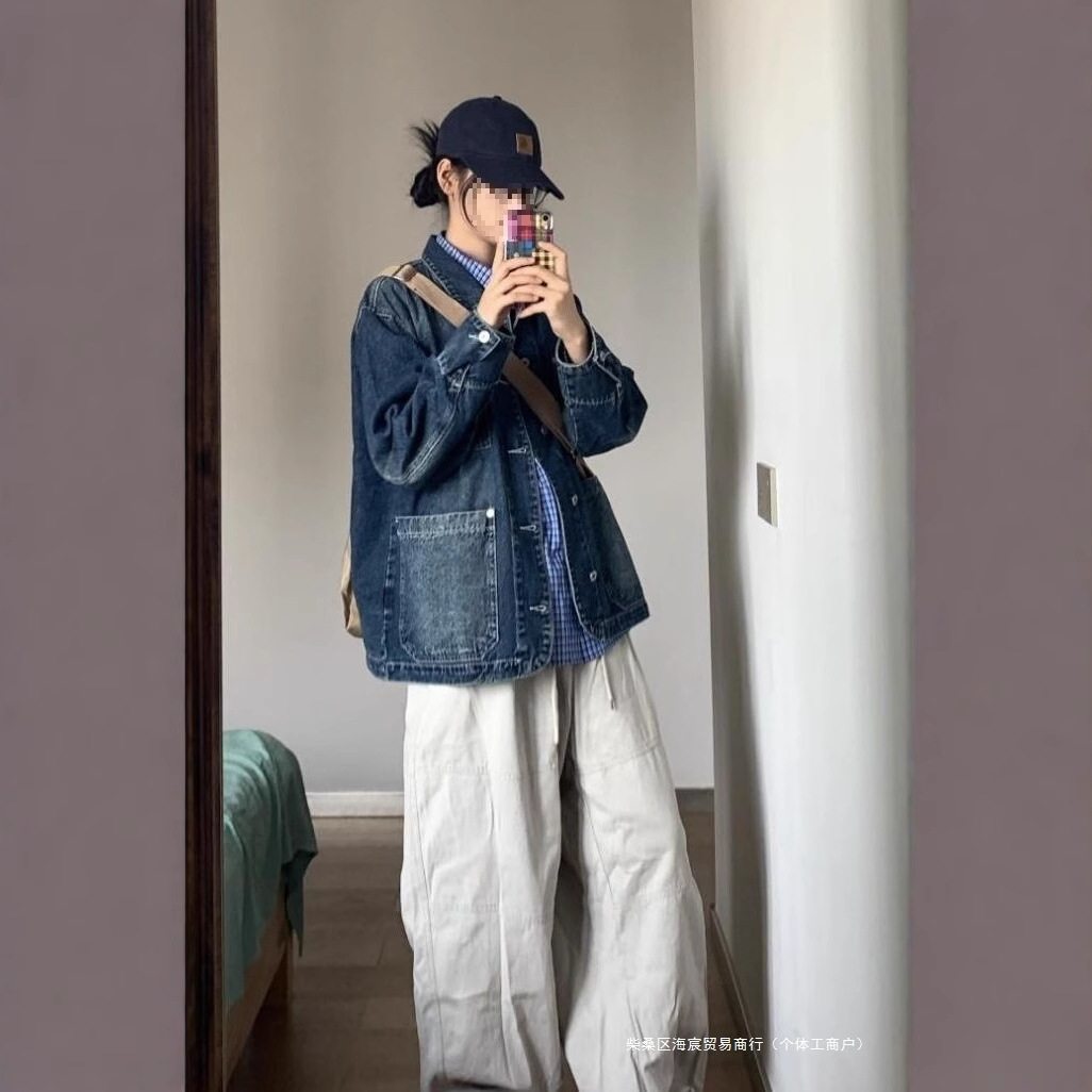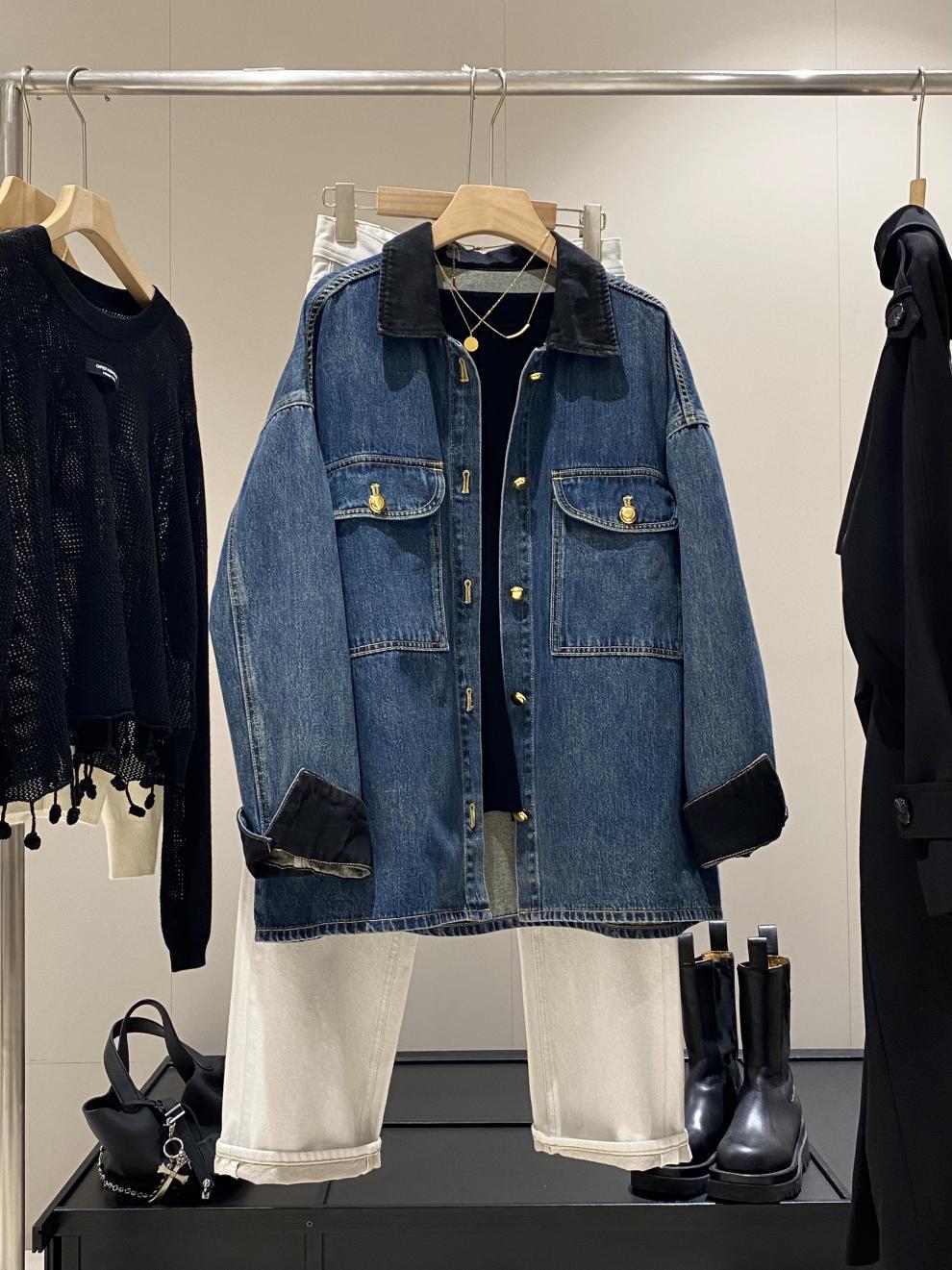 黑牡丹牛仔多次水洗宽松落肩廓形复古牛仔外套女