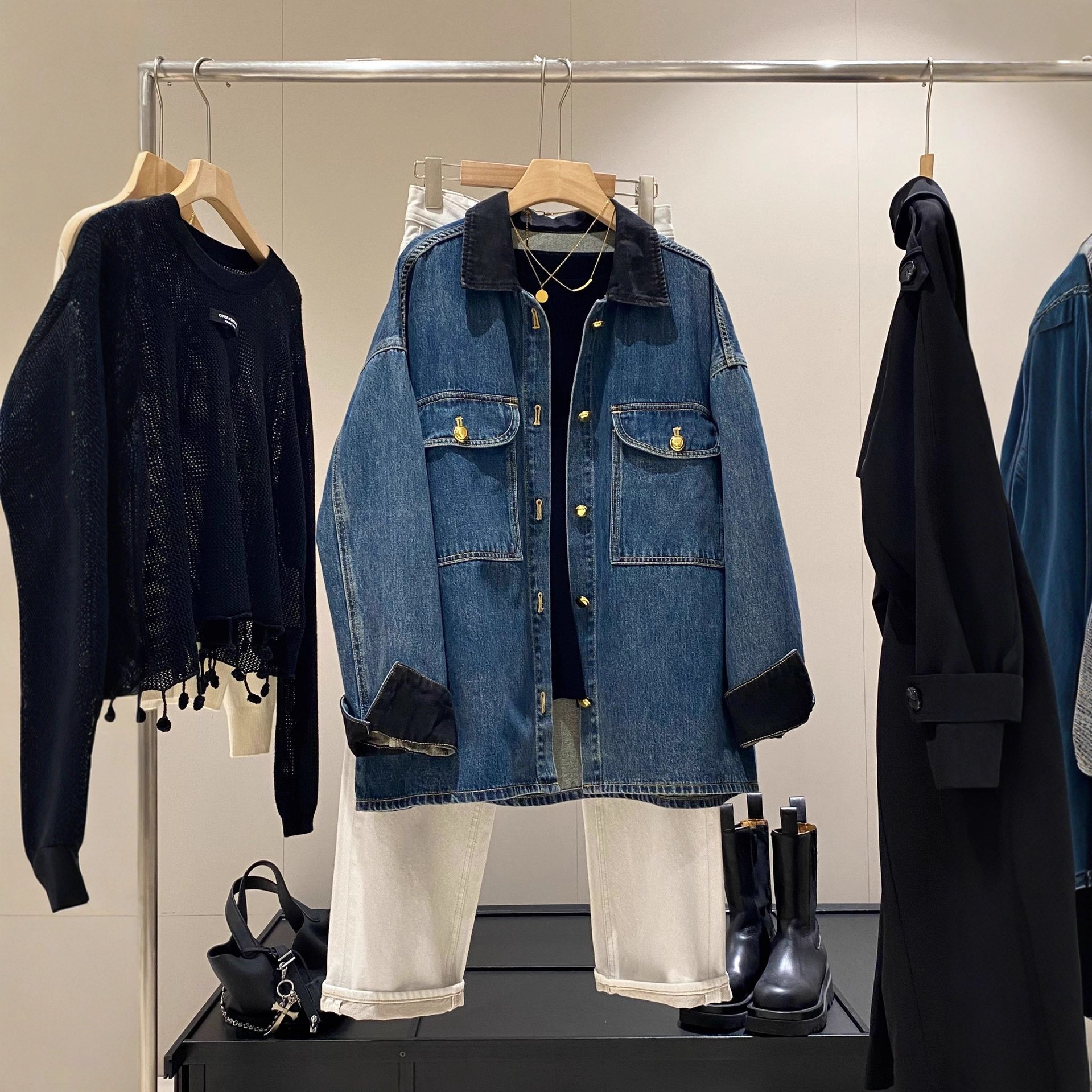 IN BLUE 高端线!黑牡丹牛仔多次水洗宽松落肩廓形复古牛仔外套女