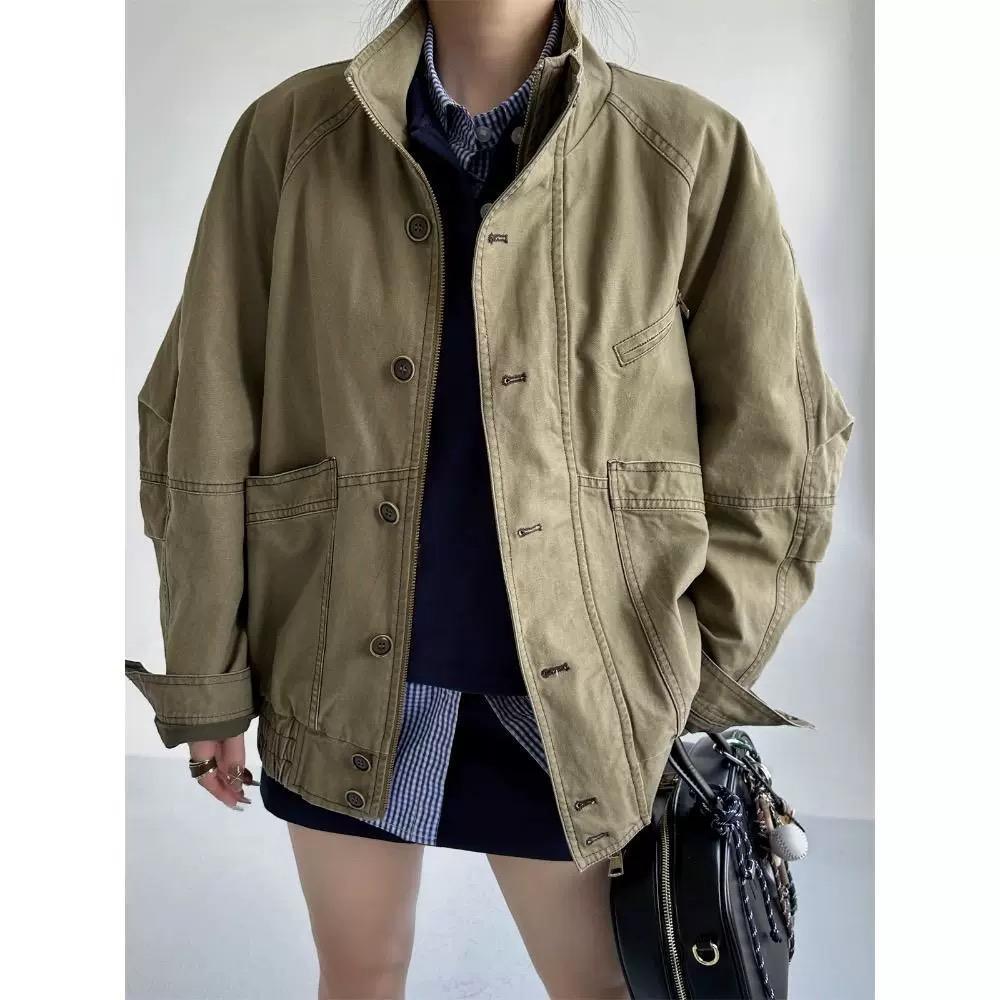 可穿年的复古爷爷风 潮人做旧水洗夹克廓形短外套女秋冬