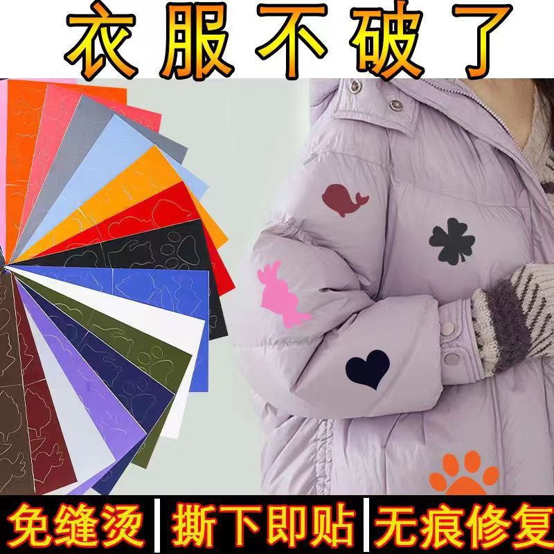 羽绒服补丁贴自粘免缝无痕破洞贴布免熨烫衣服图案贴布贴 代发