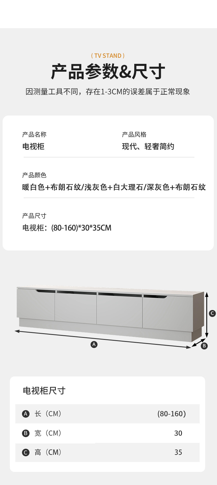 暖白色柜体+浅灰色80*30*35,暖白色柜体+浅灰色100*30*35,暖白色柜体+浅灰色120*30*35,暖白色柜体+浅灰色140*30*35,暖白色柜体+浅灰色160*30*35,浅灰色+白色80*30*35,浅灰色+白色00*30*35,浅灰色+白色120*30*35,浅灰色+白色140*30*35,浅灰色+白色160*30*35,深灰色+浅灰色80*30*35,深灰色+浅灰色100*30*35,深灰色+浅灰色120*30*35,深灰色+浅灰色140*30*35,深灰色+浅灰色160*30*35,【升级实木生态板】暖白色柜体+浅灰色顶板80*30*35,【升级实木生态板】暖白色柜体+浅灰色顶板100*30*35,【升级实木生态板】暖白色柜体+浅灰色顶板120*30*35,【升级实木生态板】暖白色柜体+浅灰色顶板140*30*35,【升级实木生态板】暖白色柜体+浅灰色顶板160*30*35,【升级实木生态板】浅灰色+白色顶板80*30*35,【升级实木生态板】浅灰色+白色顶板100*30*35,【升级实木生态板】浅灰色+白色顶板120*30*35,【升级实木生态板】浅灰色+白色顶板140*30*35,【升级实木生态板】浅灰色+白色顶板160*30*35,【升级实木生态板】深灰色+浅灰色顶板80*30*35,【升级实木生态板】深灰色+浅灰色顶板100*30*35,【升级实木生态板】深灰色+浅灰色顶板120*30*35,【升级实木生态板】深灰色+浅灰色顶板140*30*35,【升级实木生态板】深灰色+浅灰色顶板160*30*35,【搭配茶几】暖白色+浅灰色顶板80*50*40,【搭配茶几 】暖白色+浅灰色顶板100*50*40,【搭配茶几】浅灰色+白色顶板80*50*40,【搭配茶几】浅灰色+白色顶板100*50*40,【搭配茶几】深灰色+浅灰色顶板80*50*40,【搭配茶几 】深灰色+浅灰色顶板100*50*40,【搭配茶几 升级实木生态板】暖白色+浅灰色顶板80*50*40,【搭配茶几 升级实木生态板】暖白色+浅灰色顶板100*50*40,【搭配茶几 升级实木生态板】浅灰色+白色顶板80*50*40,【搭配茶几 升级实木生态板】浅灰色+白色顶板100*50*40,【搭配茶几 升级实木生态板】深灰色+浅灰色顶板80*50*40,【搭配茶几 升级实木生态板】深灰色+浅灰色顶板100*50*40,尺寸不合适支持定制
