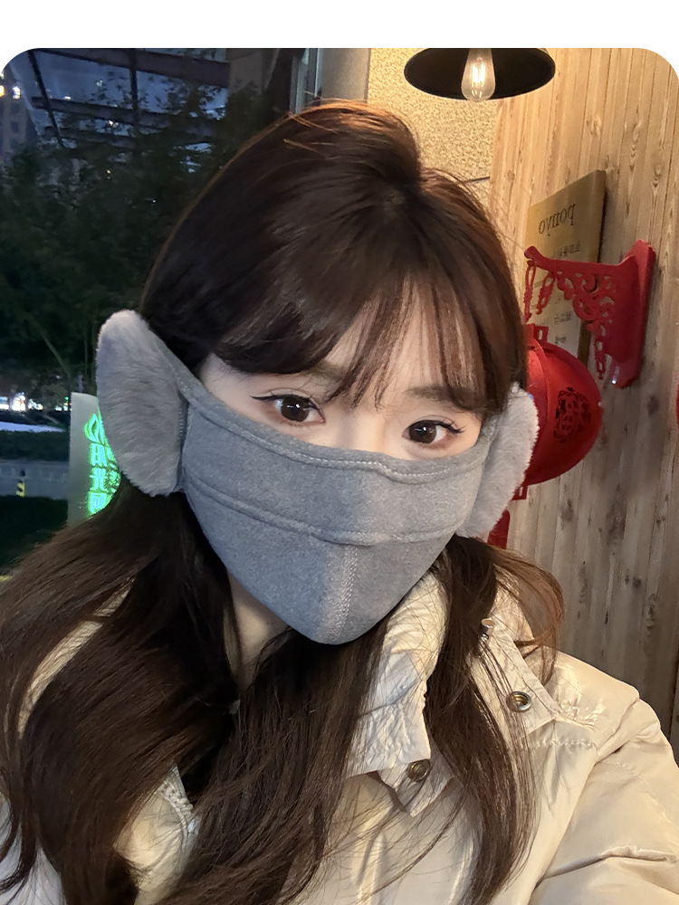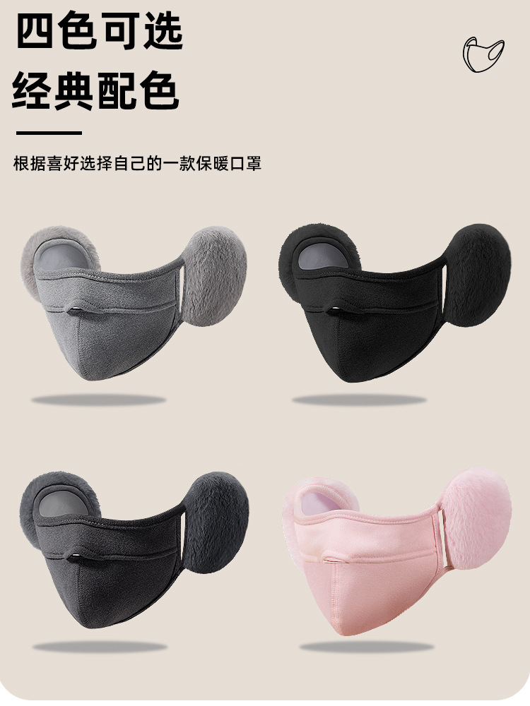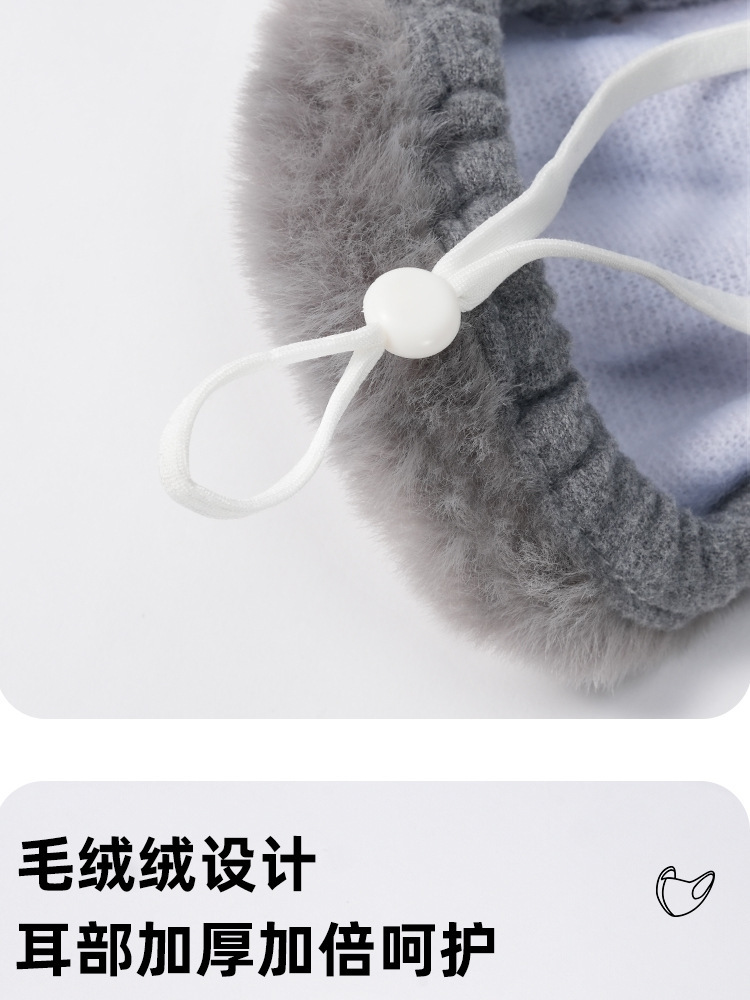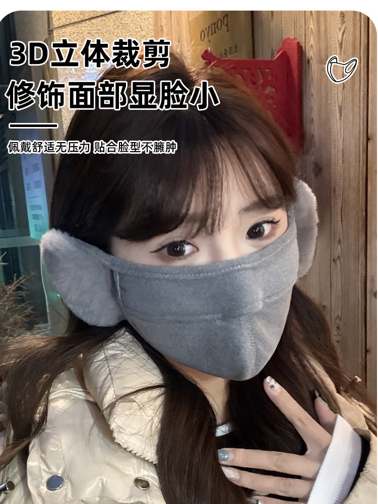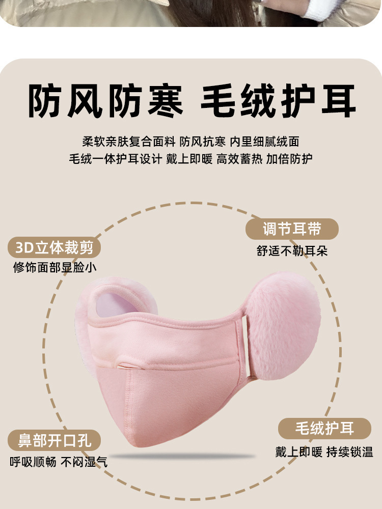 加绒保暖口罩带耳罩女秋冬季可爱毛绒防风防寒护耳口罩二合一面罩