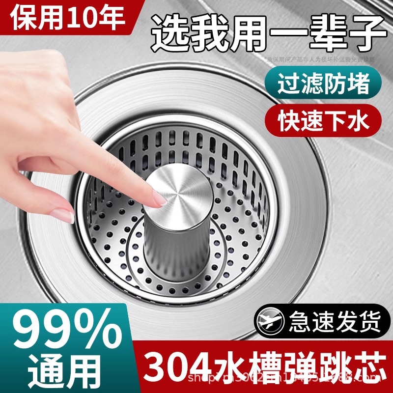 厨房水槽漏塞过滤网不锈钢弹跳芯过滤器洗碗池通用款洗菜盆漏水塞