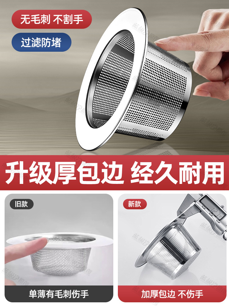 厨房水槽垃圾过滤网洗菜盆漏斗洗碗水池不锈钢304下水道提笼通用